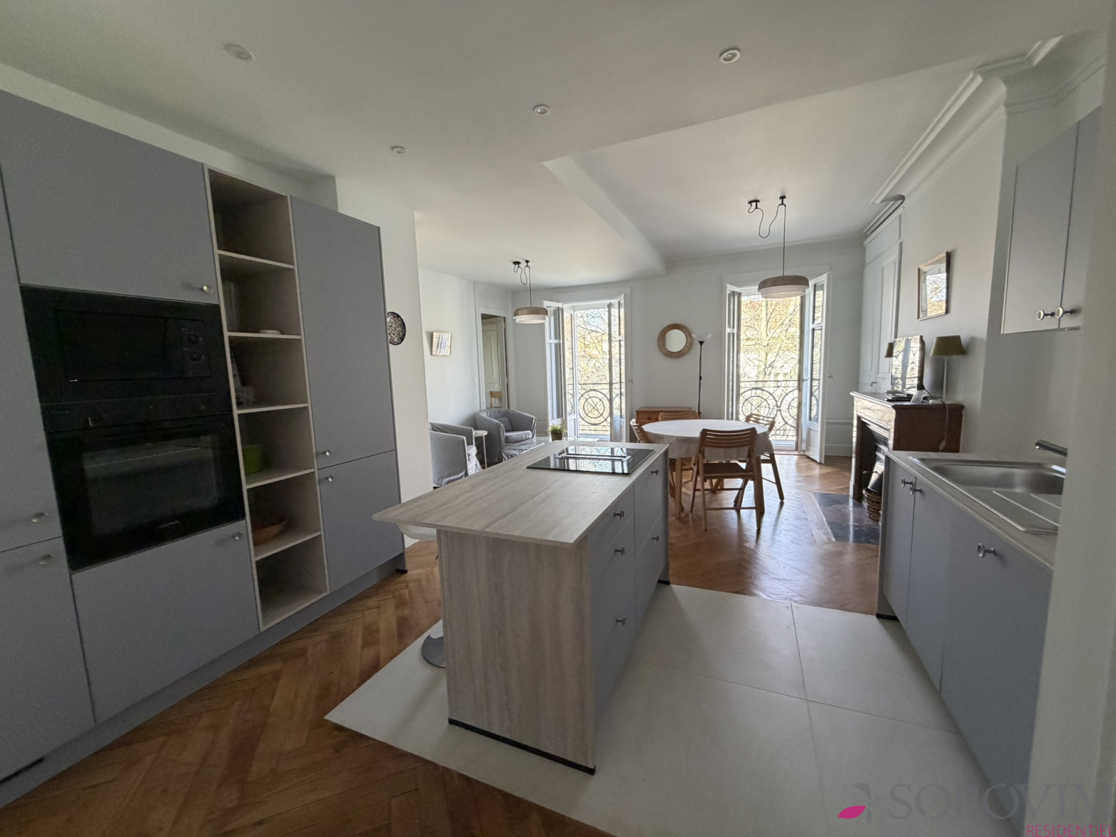 Dans un immeuble 1900 bien entretenu, en dernier étage, vous serez séduit par cet appartement meublé alliant charme de l'ancien au contemporain, entièrement rénové et climatisé. Il est composé d'une entrée qui dessert une cuisine contemporaine équipée ouverte sur un séjour avec double porte donnant accès au balcon filant. Deux chambres avec chacune une salle d'eau contemporaine. Nombreux rangements, espace buanderie. Local vélos.
