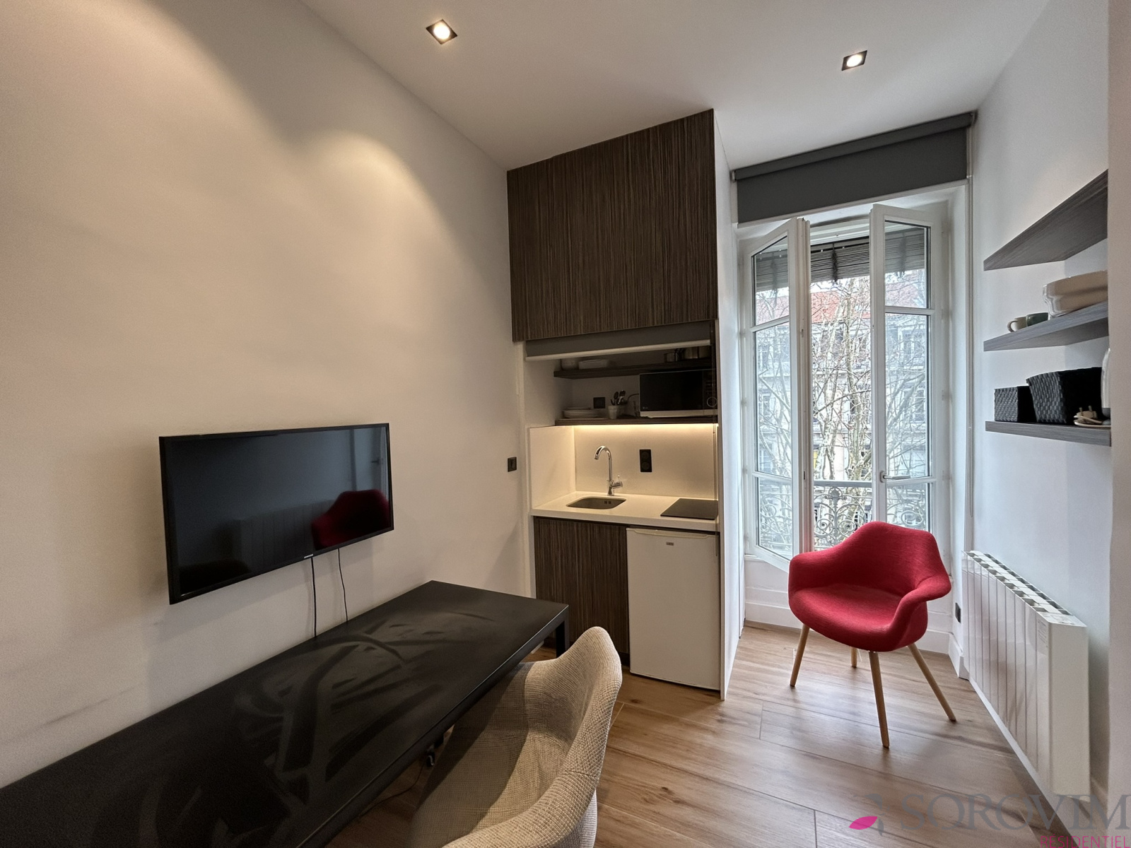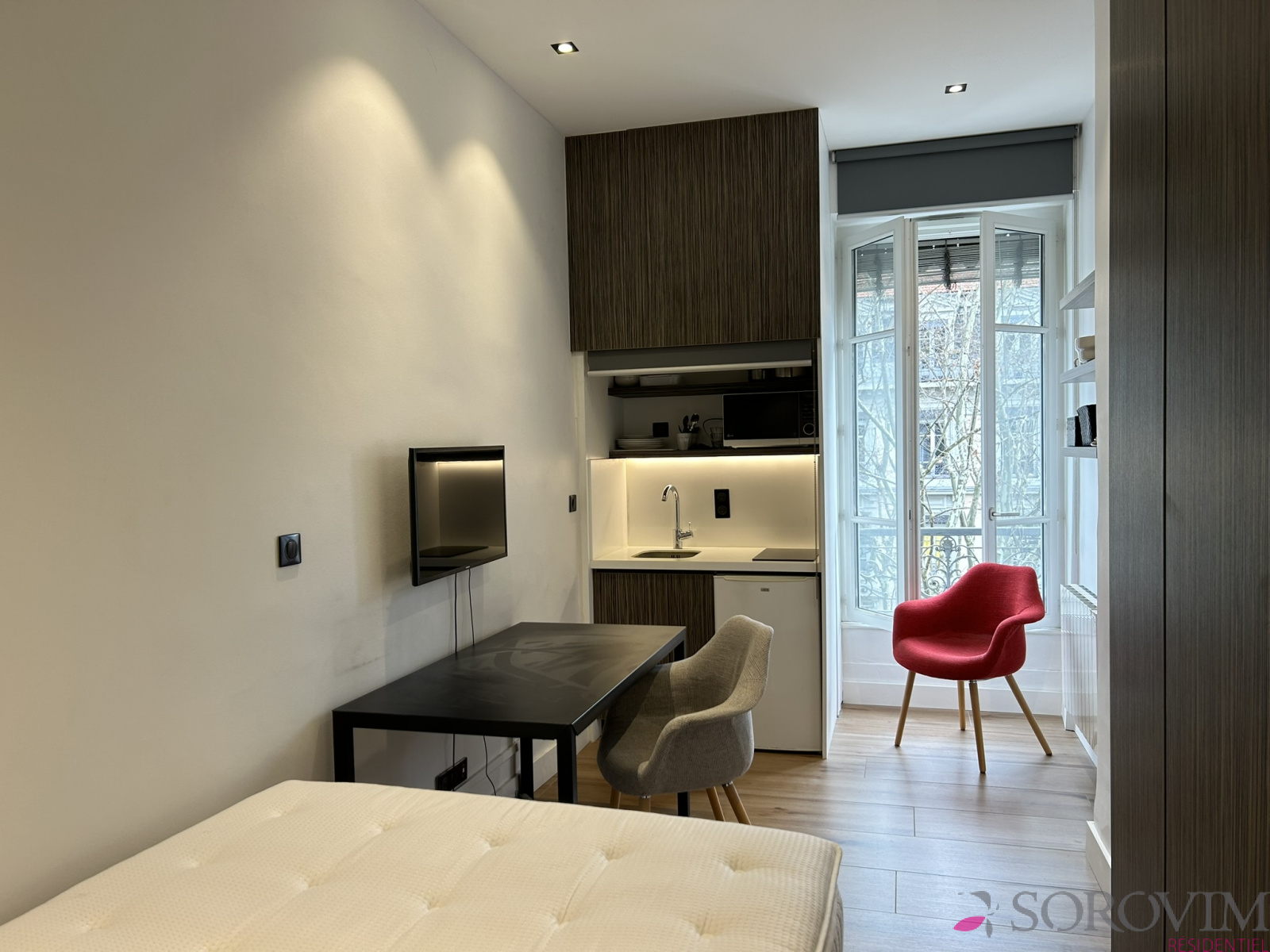 Lyon 6ème / métro Foch, rue Vendôme. Emplacement privilégié dans un bel immeuble bourgeois parfaitement entretenu. En étage élevé avec ascenseur, charmant studio entièrement meublé et équipé. Une pièce de vie avec vue dégagée et kitchenette équipée, une salle d'eau contemporaine, placard de rangement. Parfait état. Chauffage individuel. Une cave en sous-sol. Idéal investissement patrimonial ou pied-à-terre.