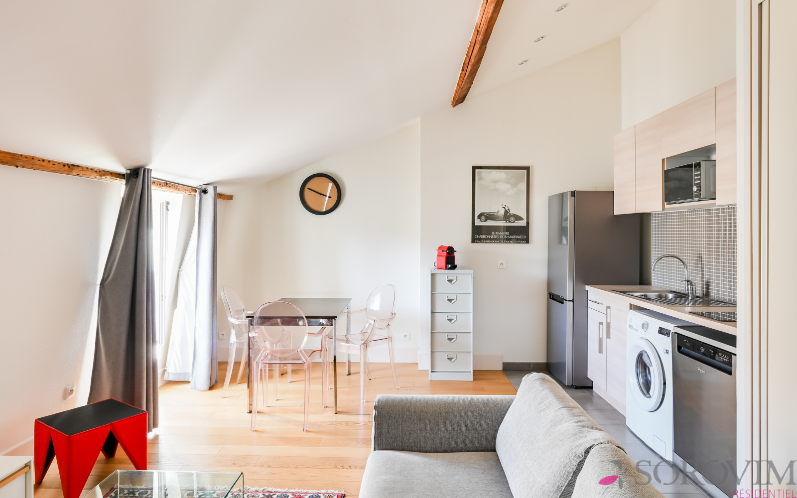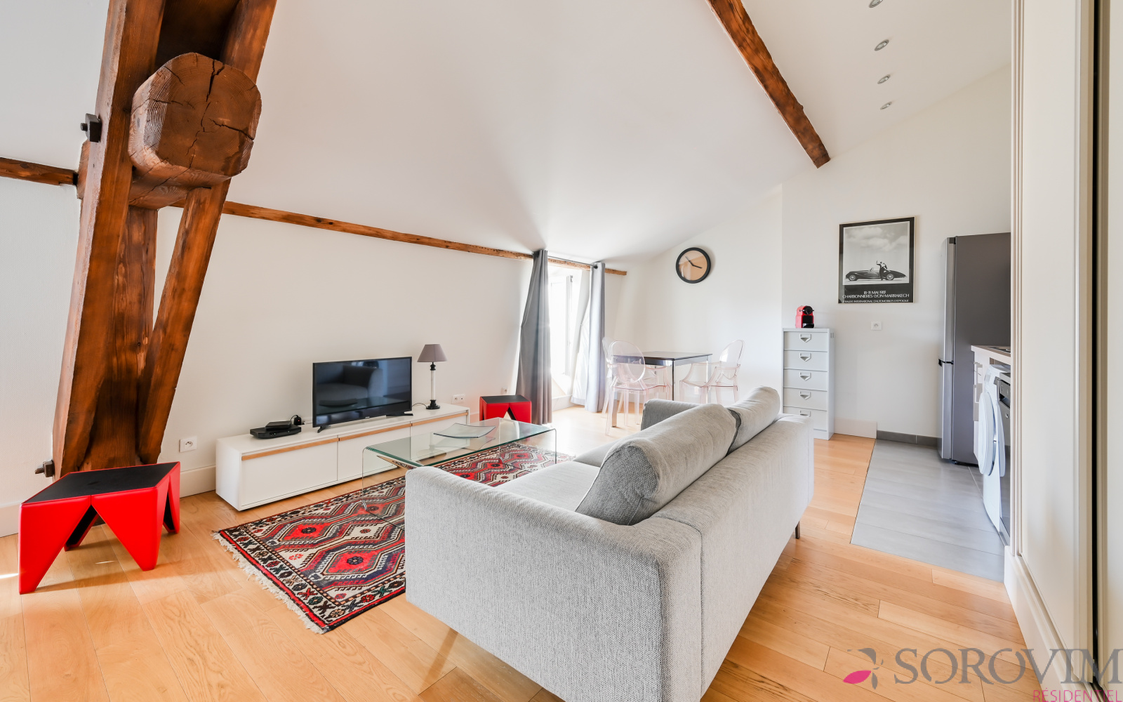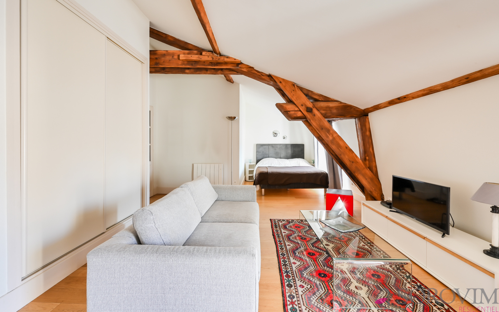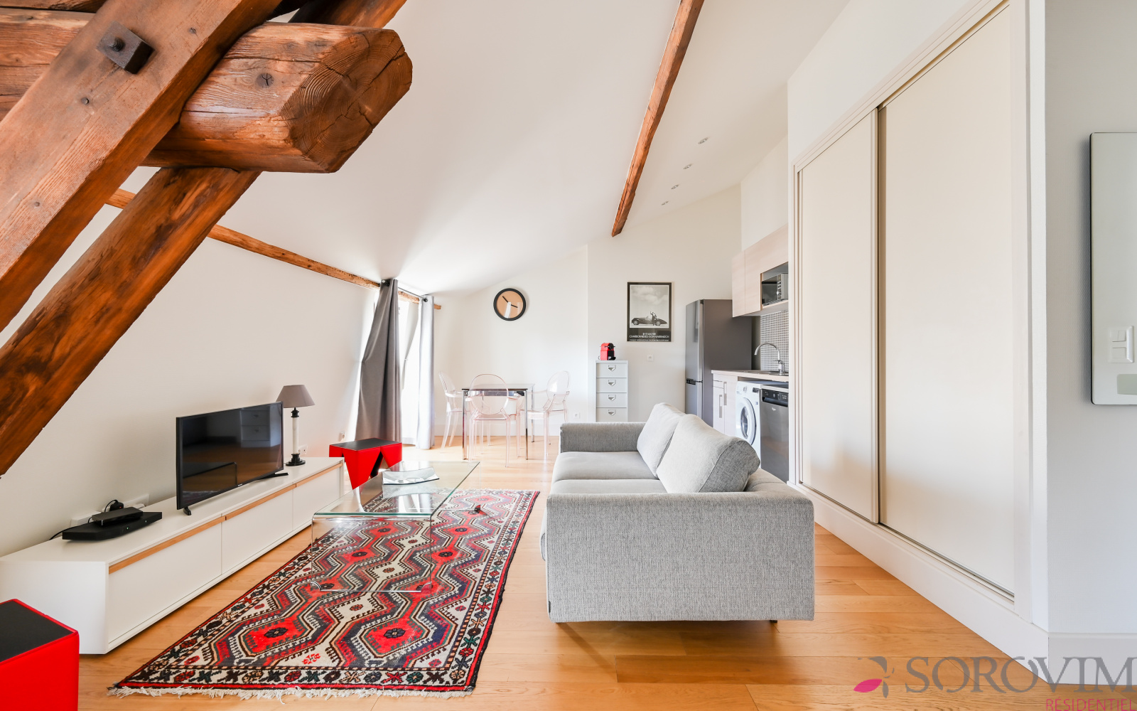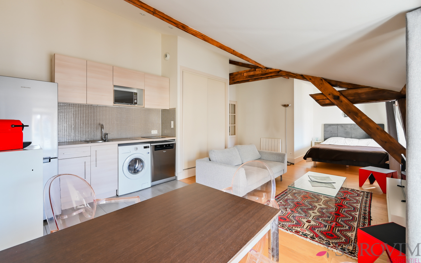 Cœur de la Presqu'île, métro Hôtel de Ville, emplacement privilégié. Dans un bel immeuble bourgeois avec ascenseur, au dernier étage, un charmant appartement de 37 m² vendu meublé. Vaste pièce de vie de 30 m² en parquet avec une cuisine USA entièrement équipée, rangement et espace de couchage. Une salle d'eau contemporaine, un toilette séparé avec lave-mains. Chauffage individuel et double vitrage. Vous serez séduit par cet appartement aux prestations soignées et de qualité, bénéficiant d'une belle luminosité avec son exposition Ouest et sa vue Fourvière. Idéal investissement locatif ou pied à terre. Copropriété composée de 15 lots, quote-part charges annuelles 720 €, pas de procédure en cours. Pour une visite Angela FALCONNET-VITALI 06.15.75.06.49