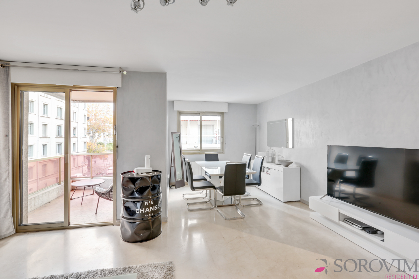 Dans une résidence cossue de 1998 édifiée par RIC avec gardien et parfaitement entretenue, un bel appartement rénové de type 2 pièces de 66,17 m². L'entrée dessert un vaste séjour en pierre marbrière donnant sur un balcon de 6 m² exposé à l'Est. Une cuisine indépendante entièrement équipée avec son espace repas. La partie nuit dessert une chambre avec dressings aménagés et une salle d'eau contemporaine. Un toilette indépendant ainsi qu'une buanderie complètent ce charmant appartement en parfait état.