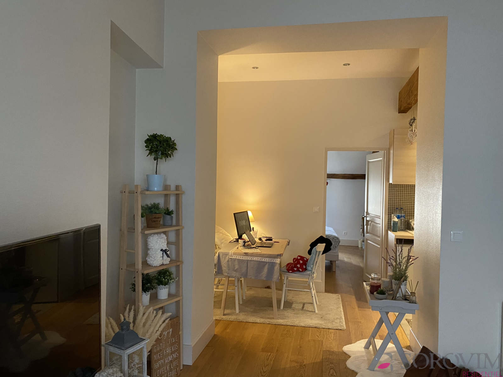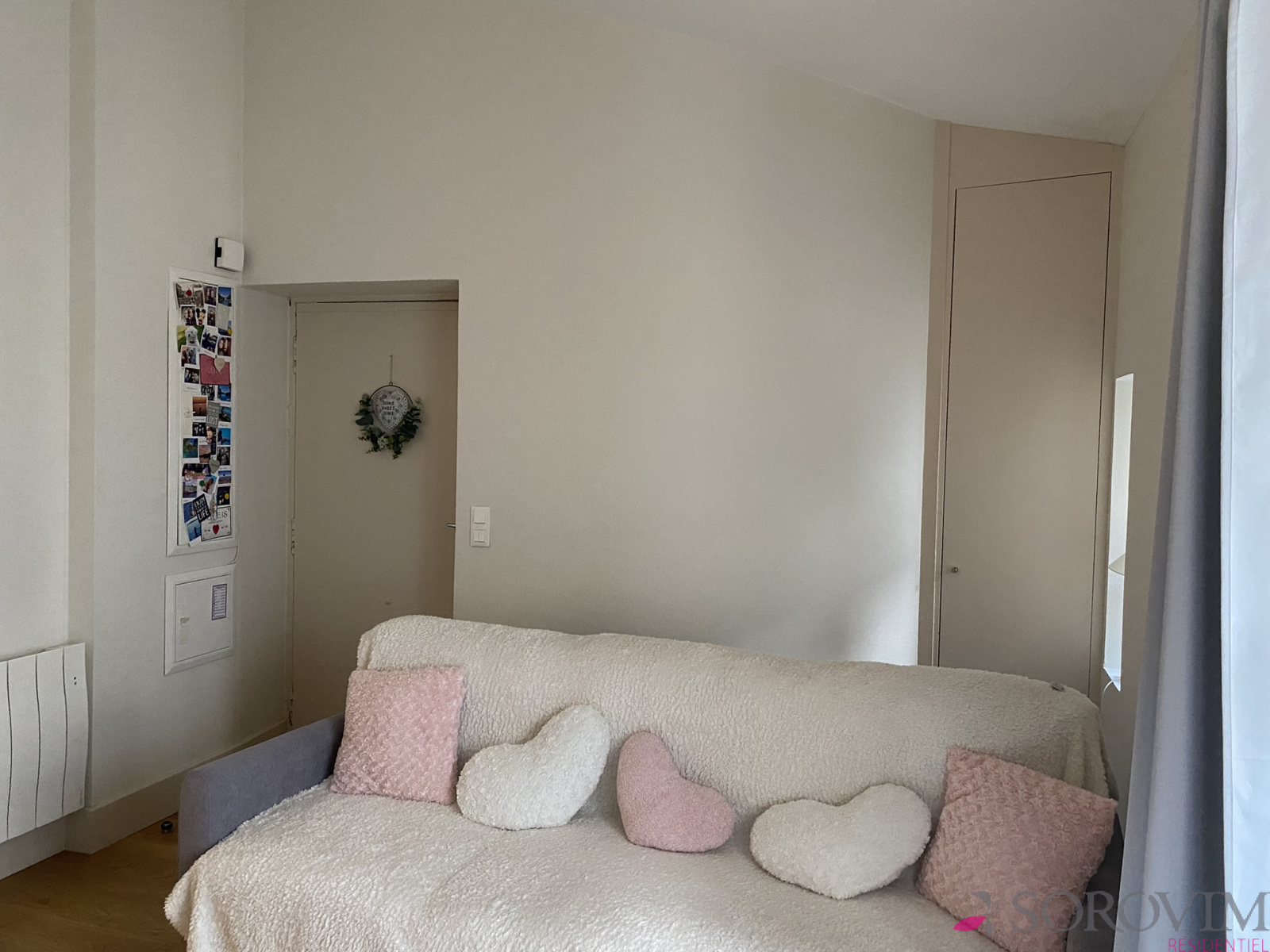 Au dernier étage d'un bel immeuble bourgeois avec ascenseur, charmant T2 de 40 m² vendu loué. Traversant Est et Ouest, en parfait état, il se compose d'une pièce de vie en parquet donnant sur la cour intérieure, une cuisine US meublée et équipée. Une vaste chambre avec vue dégagée et bénéficiant d'un placard de rangement, une salle d'eau contemporaine avec toilette. Loué 818 € / mois hors charges. Infos Loi Alur : copropriété composée de 9 lots, quote-part charges annuelles 850 €, pas de procédure en-cours.