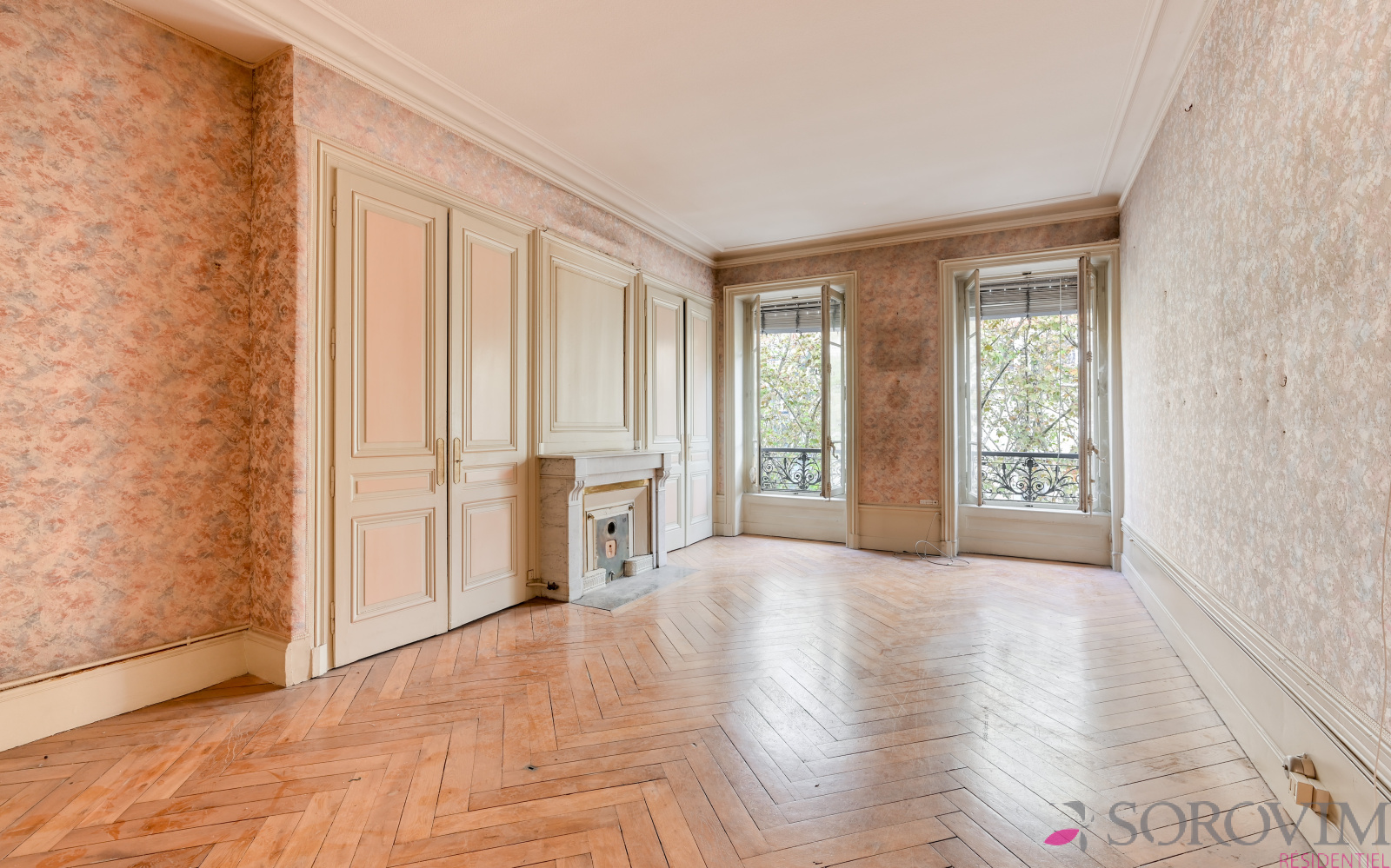 Lyon 6ème métro Foch, emplacement prisé rue Vendôme. Dans un bel immeuble bourgeois parfaitement entretenu, en étage élevé avec ascenseur, beau potentiel pour cet appartement de 63 m² à rénover. Traversant Est et Ouest, sans vis-à-vis et ensoleillé, il a conservé son charme ancien avec parquet chevron, hauteur sous plafond, cheminées et boiseries. Vaste séjour avec deux fenêtres, une grande chambre donnant sur une belle cour arborée. Possibilité de créer une cuisine USA. Travaux à prévoir. Cave.