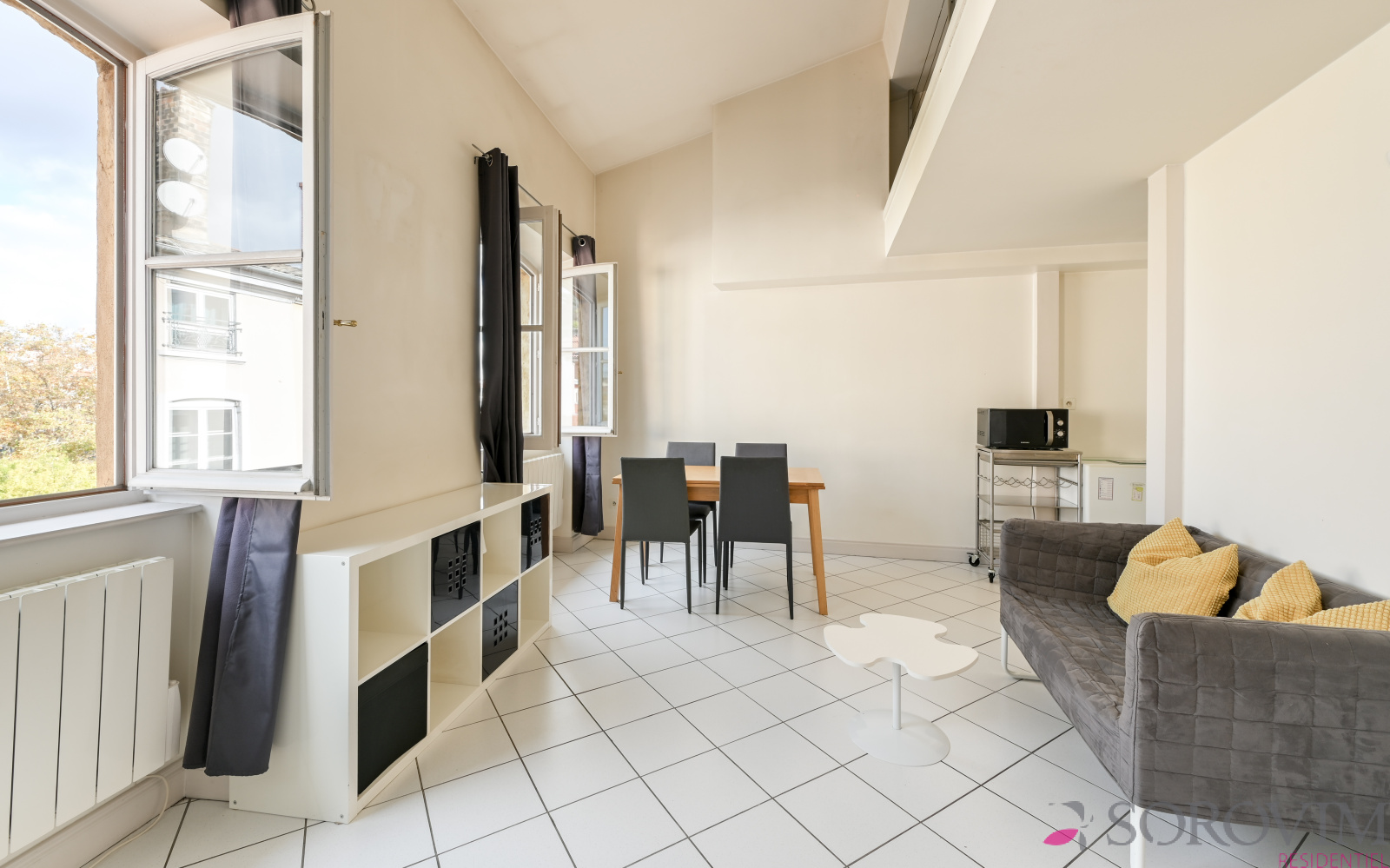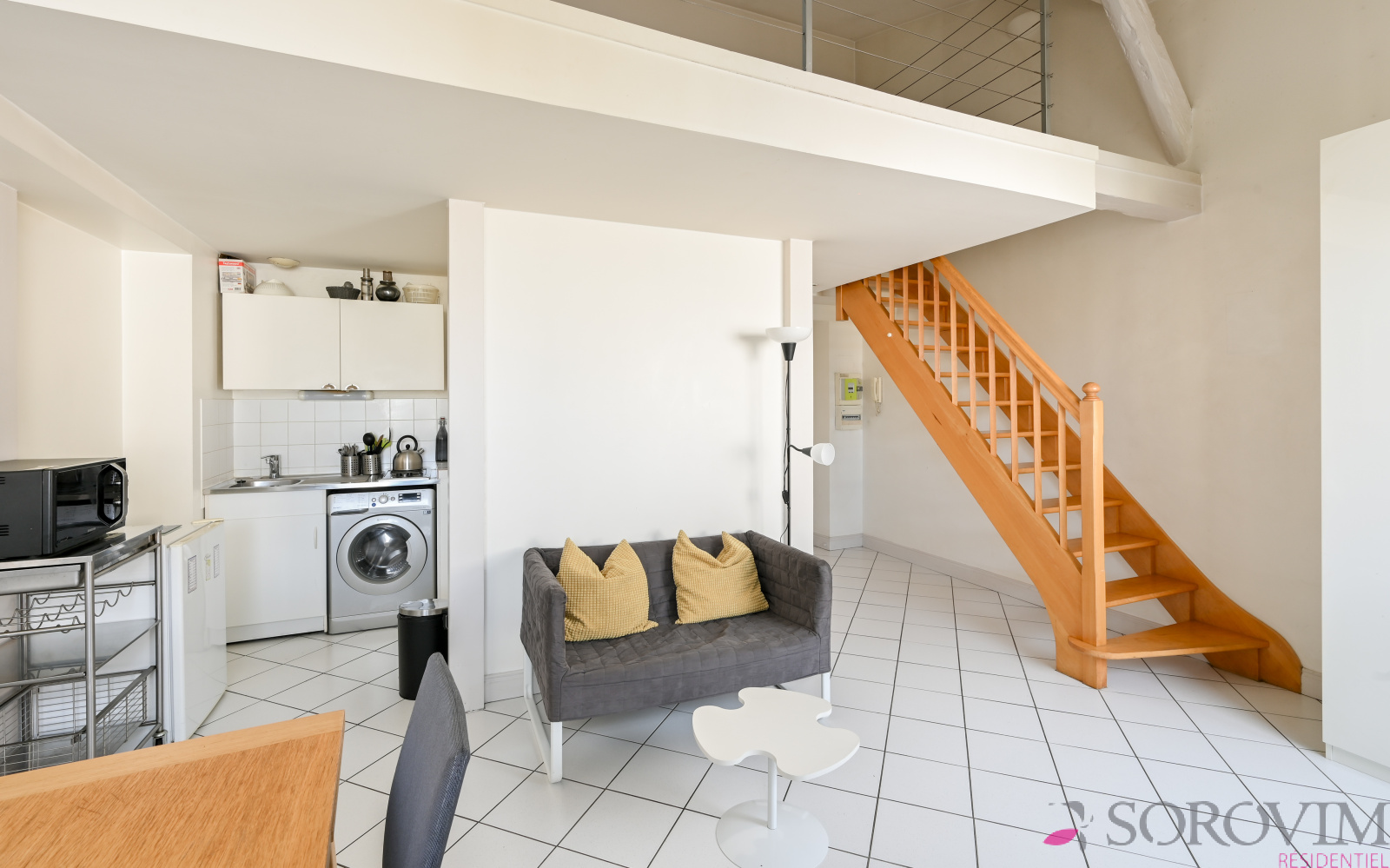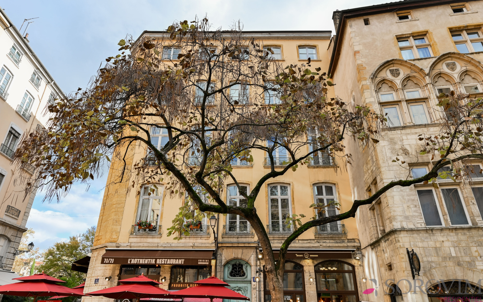 Lyon 5ème - Au cœur du Vieux-Lyon, place du Change, en dernier étage avec ascenseur d'un immeuble historique, charmant T2 meublé en duplex. D'une superficie de 40 m² utile dont 32 m² Carrez, il se compose d'un jolie pièce de vie carrelée avec son coin cuisine équipée. Une salle d'eau avec toilettes. En mezzanine, une chambre de 13 m² éclairée par un velux. Bon état général pour ce coquet appartement bénéficiant d'une belle vue dégagée sur la Saône. Chauffage individuel. Idéal première acquisition et investisseurs.