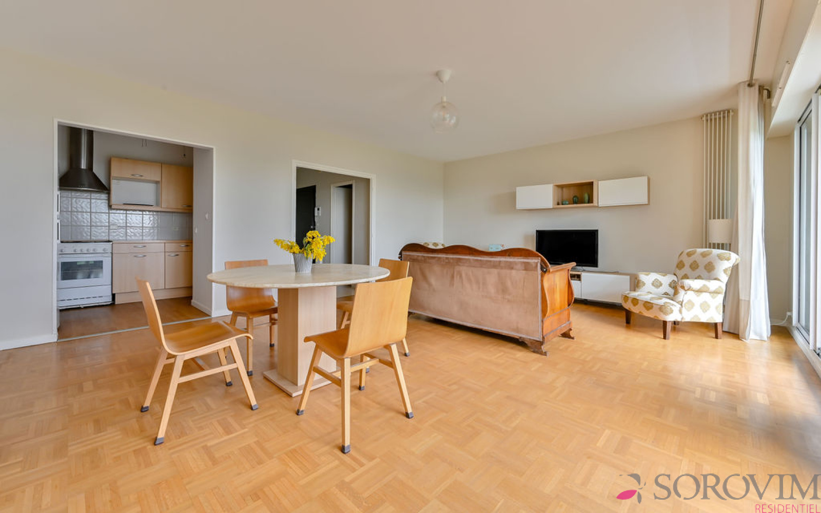 Lyon 5ème / Sainte-Foy, proximité commerces et village. Au calme et dans un cadre verdoyant, dans une résidence de standing édifiée par Pitance, beaux volumes pour ce 2 pièces de 72 m². Il se compose d'une entrée avec un dressing aménagé sur-mesure, un vaste séjour de 33 m² en parquet avec de grandes baies vitrées ouvrant sur un balcon exploitable de 14 m². Une cuisine entièrement meublée et équipée. La partie nuit dessert une chambre avec rangement, une salle de bains spacieuse et un toilette séparé. Une cave et un local à vélos. Coup de cœur pour cet appartement bénéficiant d'une vue dégagée et niché au sein d'une copropriété cossue avec un beau parc arboré. Infos Loi Alur : 28 lots de copropriété, quote part charges annuelles 4 400 €, pas de procédure en cours. Angela FALCONNET-VITALI 06.15.75.06.49