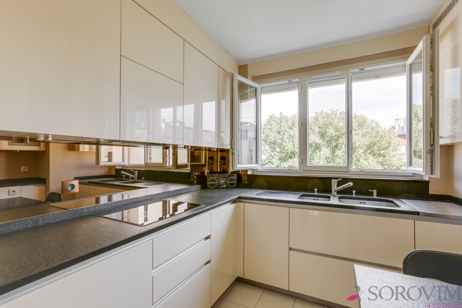 L'entrée accueille un double séjour climatisé ouvert sur le balcon de 7 m². Une cuisine équipée contemporaine indépendante, deux chambres dont une de 16 m² donnant sur une grande cour arborée au calme avec dressing. Une salle de bains contemporaine et un toilette indépendant.