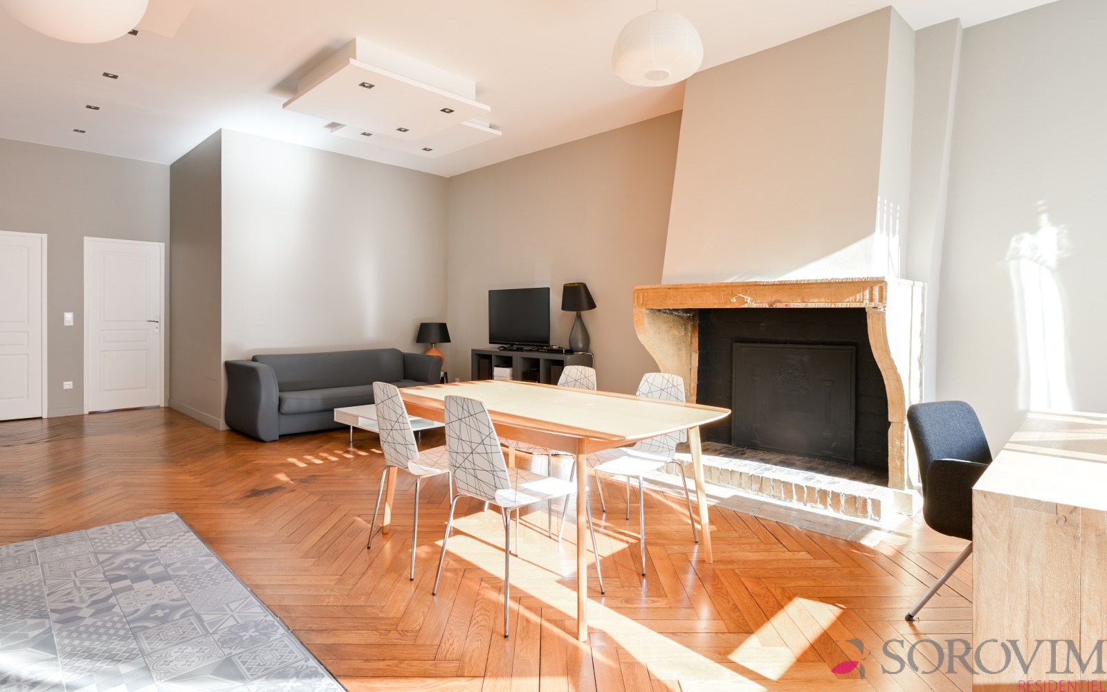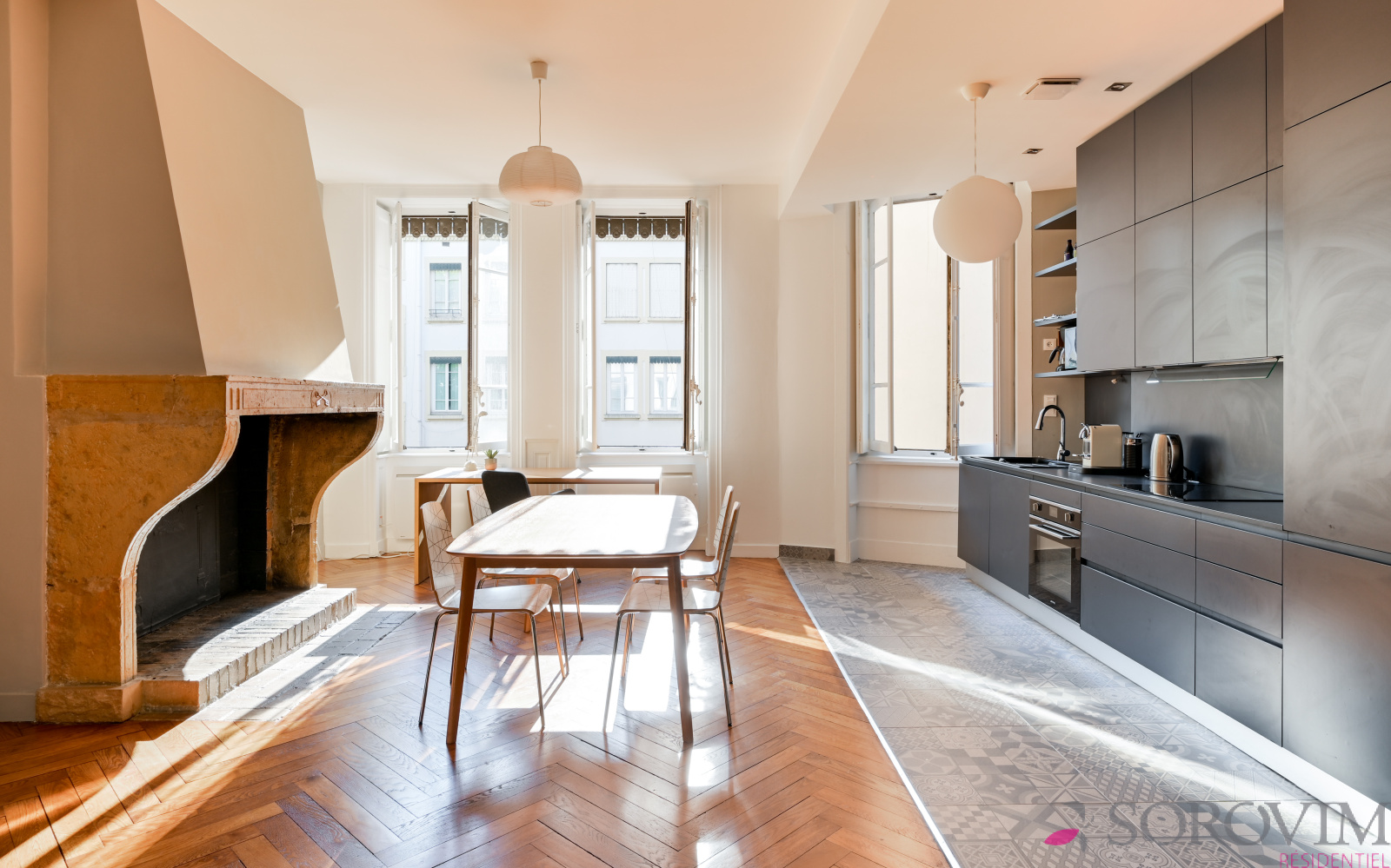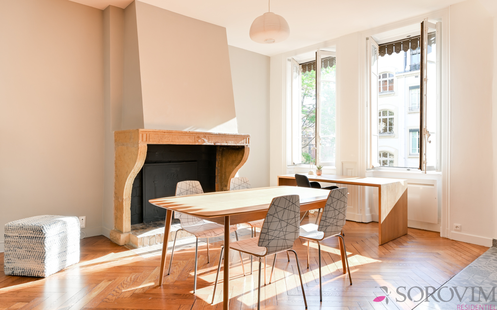 Lyon 6ème - Entre Saint-Pothin et les berges du Rhône. Emplacement privilégié pour ce charmant T3 de 83 m². Dans un bel immeuble bourgeois, en étage élevé avec ascenseur, vous serez séduit par cet appartement rénové traversant Est et Ouest. Un beau séjour de 44 m² avec parquet et cheminée donnant sur une charmante cour intérieure ainsi qu'une cuisine USA équipée contemporaine. Deux chambres de 17 m² et 11 m² avec parquet et cheminée bénéficiant chacune de sa salle d'eau privative. Chauffage individuel. Une cave complète ce bel appartement lumineux et chaleureux. Local à vélos/poussettes.