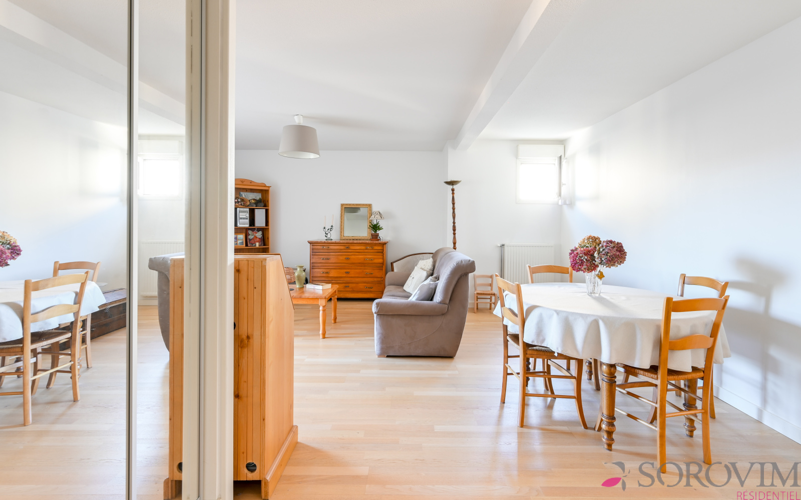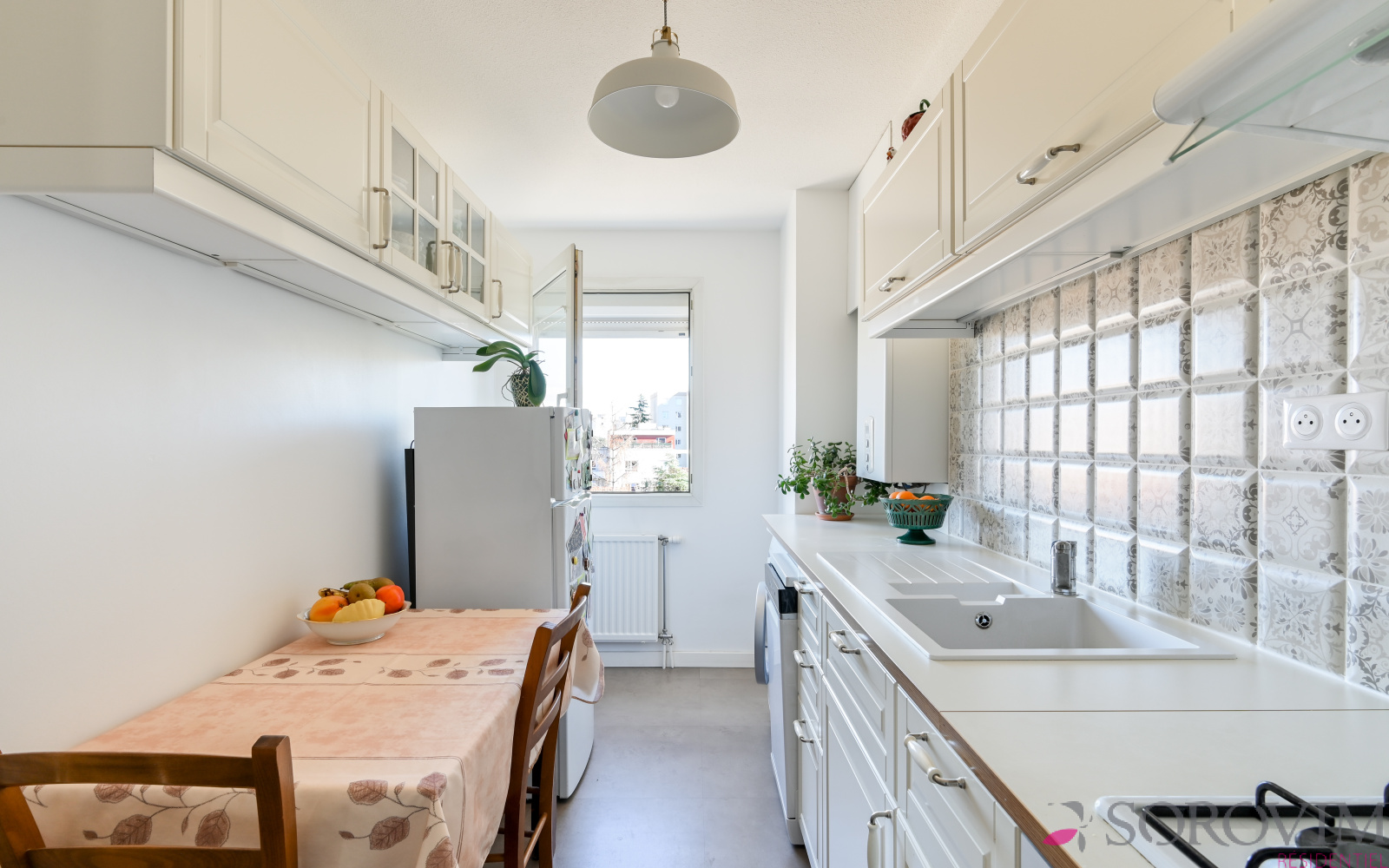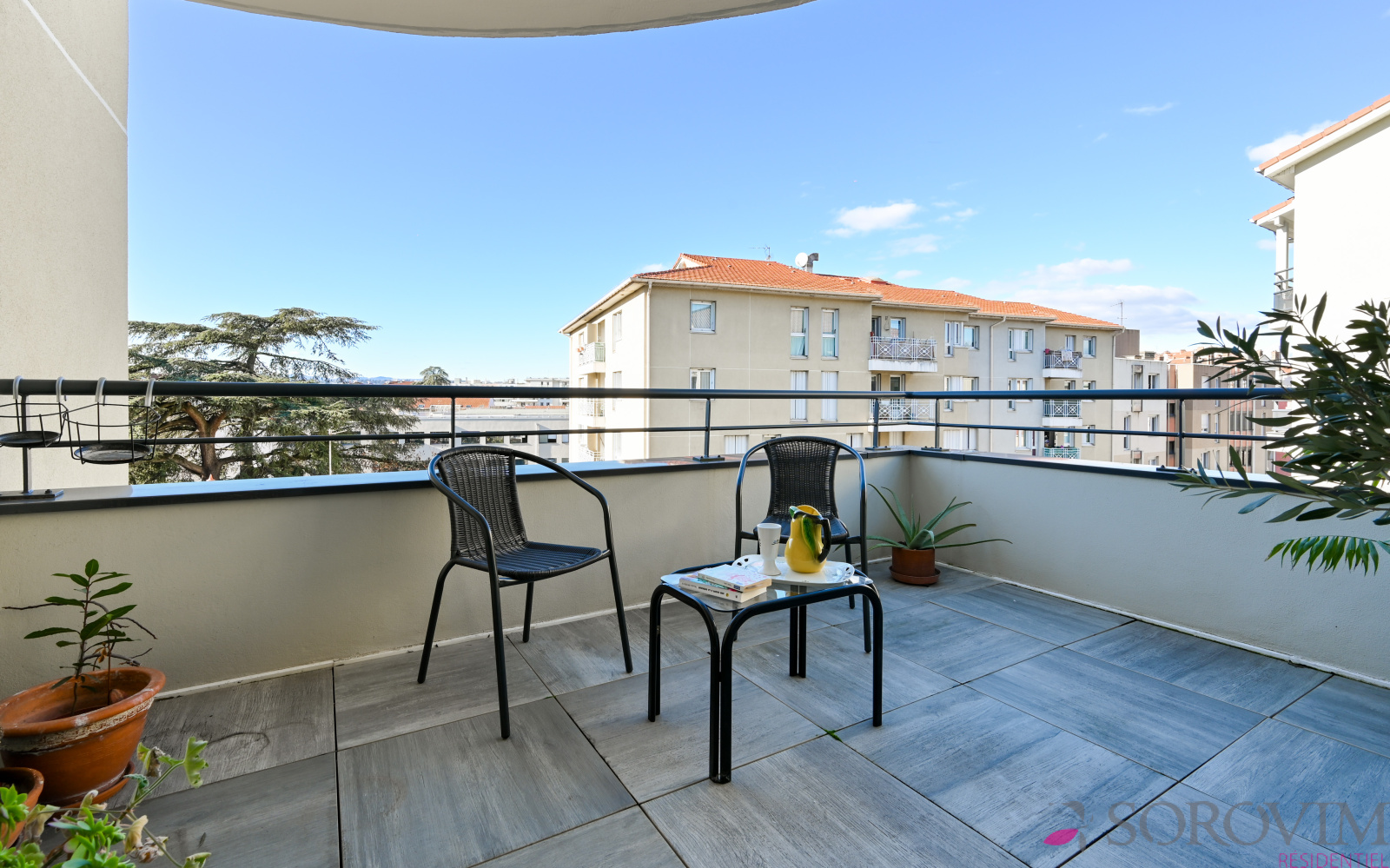 Dans une résidence contemporaine ravalée et parfaitement entretenue, vous serez séduit par cet appartement en étage élevé de 69 m² entièrement rénové. Il bénéficie d'une belle terrasse de 10 m² exposée à l'Ouest avec vue sur les Monts du Lyonnais. L'entrée dessert un beau séjour en parquet avec vue dégagée, une cuisine indépendante meublée, deux chambres au calme, une salle de bains contemporaine, un toilette indépendant. Chauffage individuel gaz. Un garage en sous-sol. Un jardin verdoyant au sein de la copropriété.
