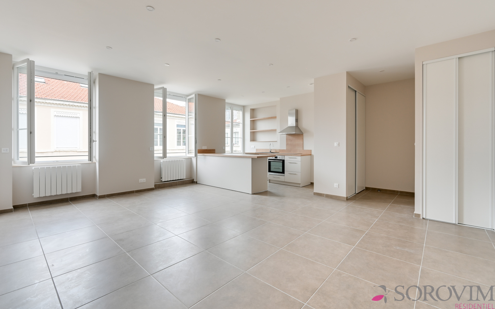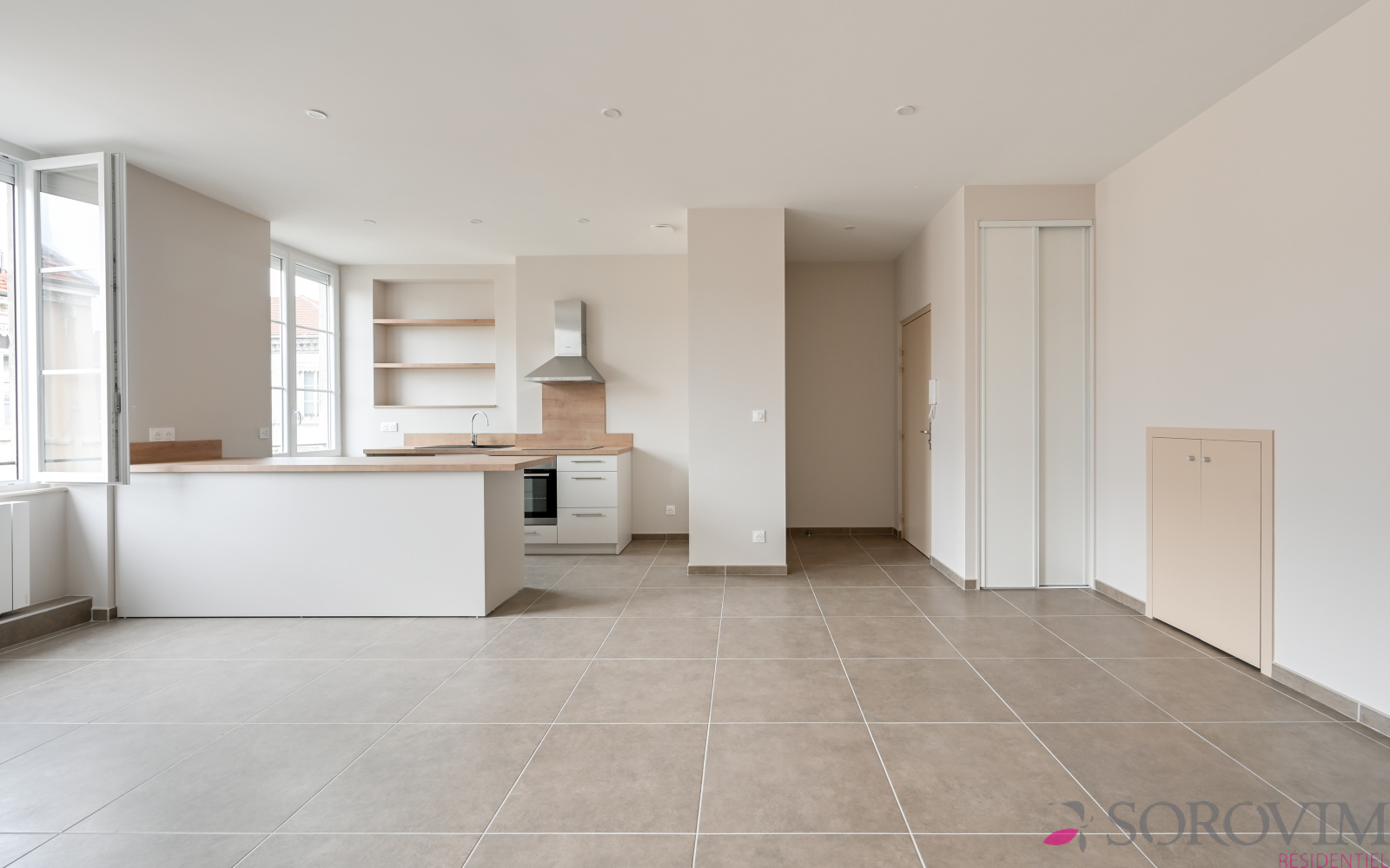 Au dernier dernier étage avec ascenseur, un appartement entièrement rénové de 66 m² avec une belle vue dégagée. Il se compose d'une grande pièce de vie ouverte sur une cuisine équipée, deux chambres en parquet chêne avec placards de rangement, une salle d'eau contemporaine avec lumière naturelle. Toilette indépendant. Chauffage individuel. Cave et local à vélos dans la cour de l'immeuble.