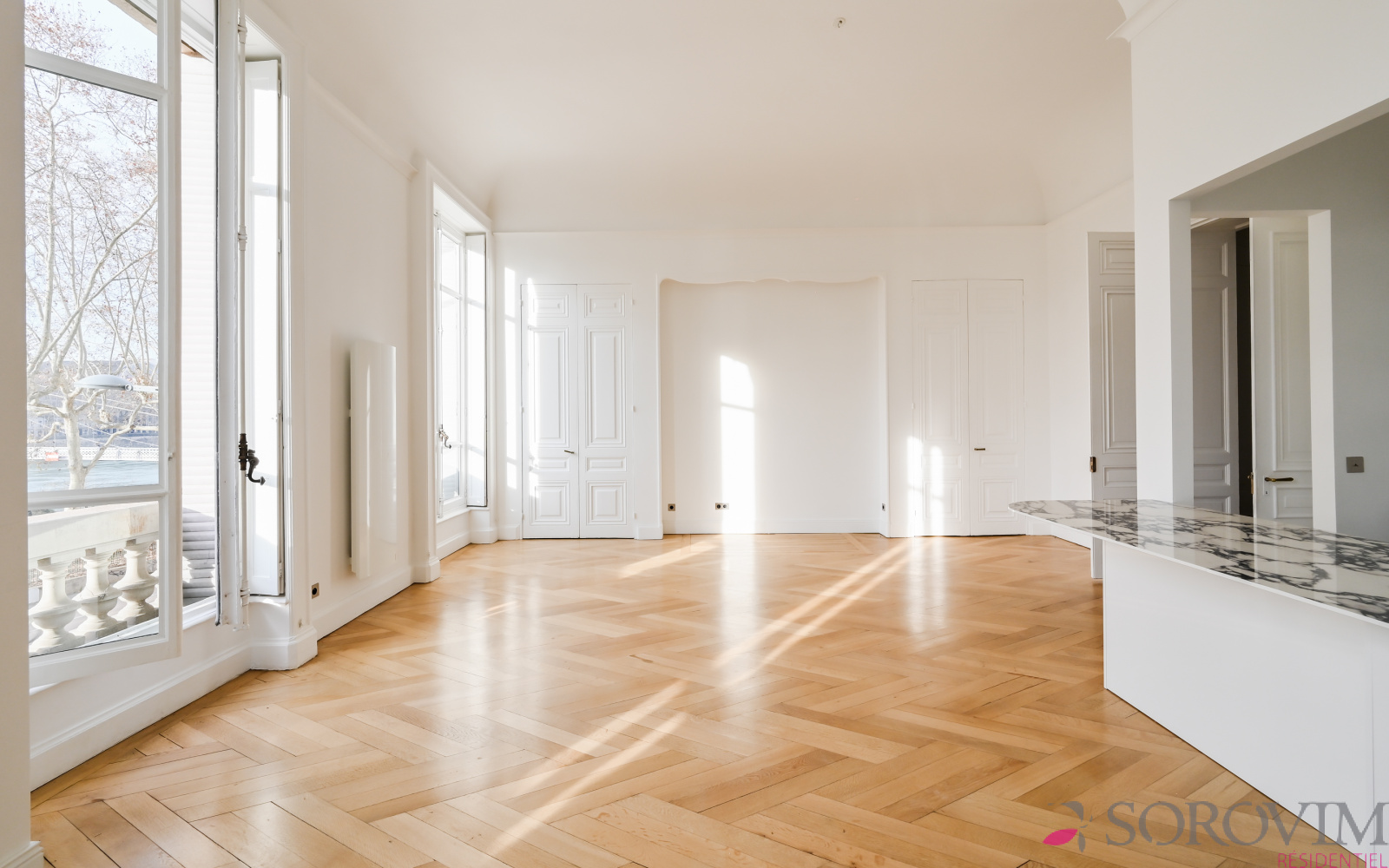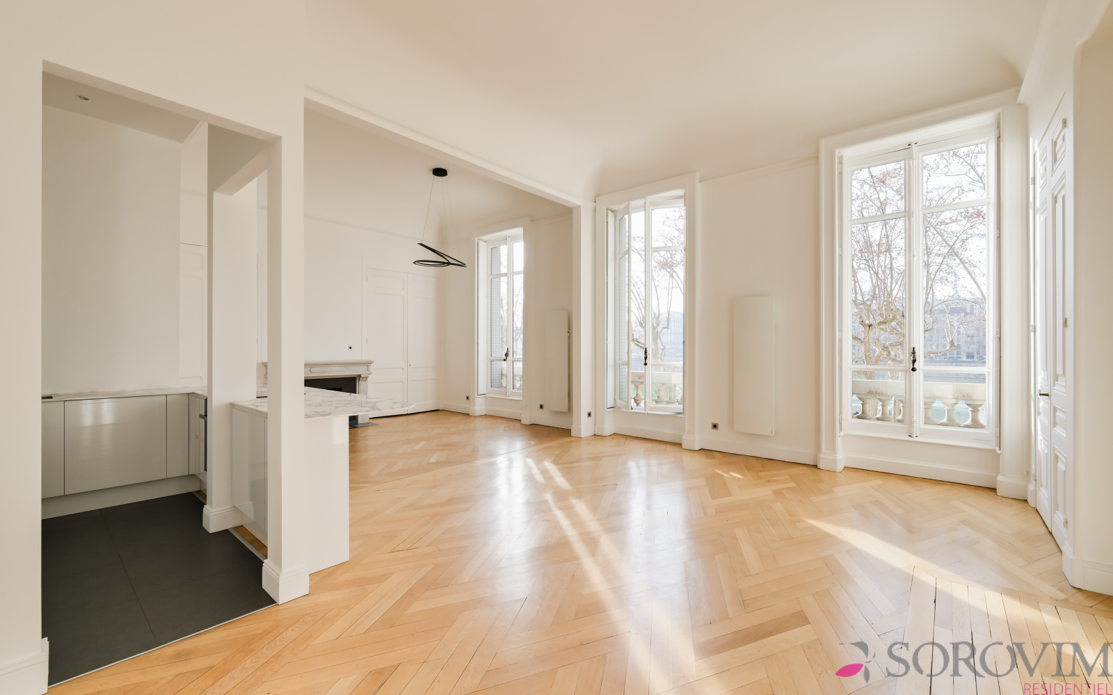 Lyon 6ème / Quai Sarrail - emplacement privilégié. Dans un somptueux immeuble, rénovation de grande qualité pour cet appartement de réception. Belle pièce de vie de 52 m² avec magnifique vue dégagée sur le Rhône. Une cuisine contemporaine entièrement équipée s'intégrant parfaitement au séjour / salle à manger. Sur une charmante cour arborée, au calme absolu, deux vastes suites bénéficiant de dressings réalisés sur-mesure, salle de bains & salle d'eau. Lumineux avec son exposition Est et Ouest, vous serez séduit par cet appartement d'exception au charme de l'ancien préservé : parquet d'origine, belles cheminées d'époque et 4 m de hauteur sous plafond. Cave.
