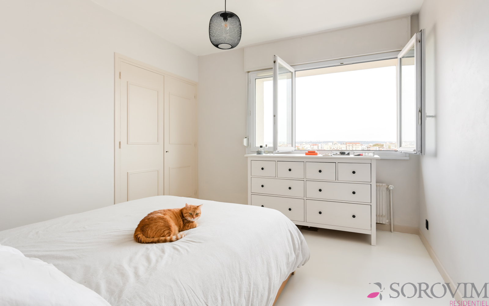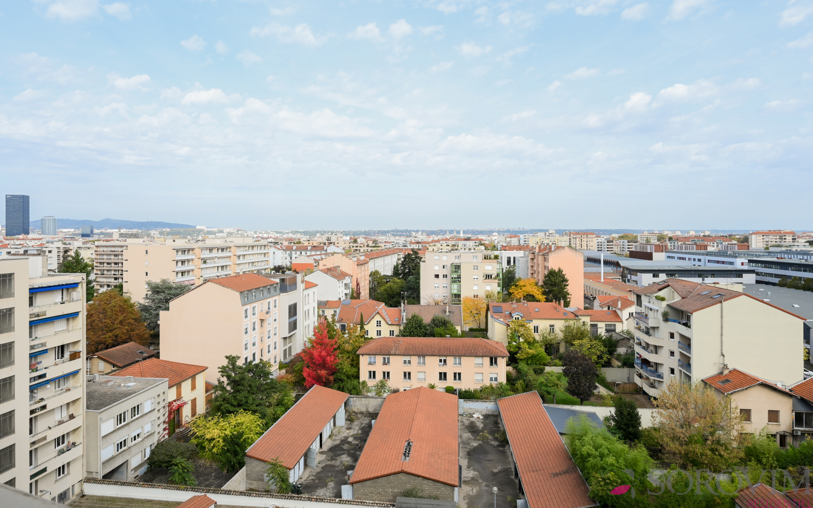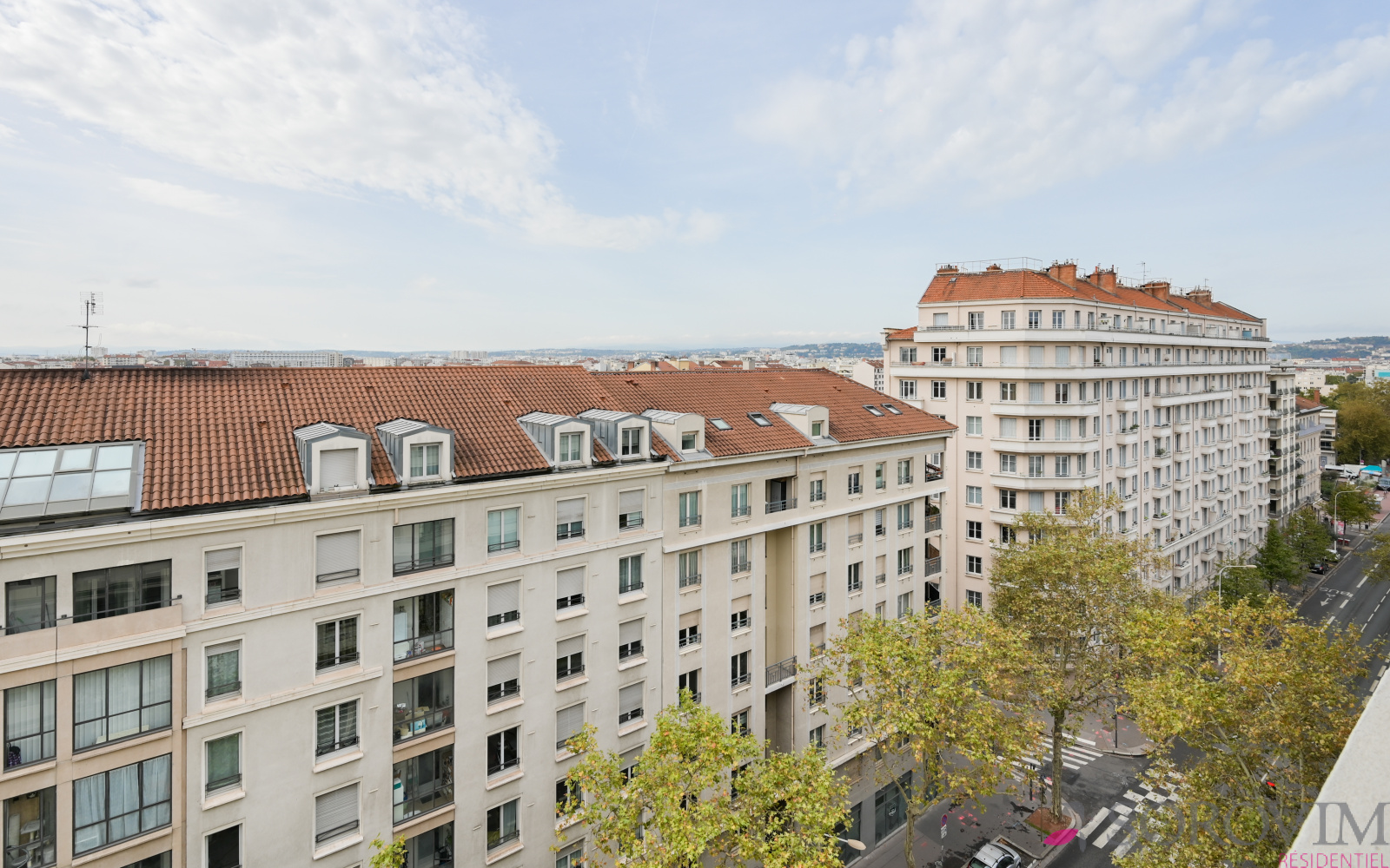 Cours Albert Thomas à Lyon 3ème Monplaisir. Proche de toutes les commodités, dans un immeuble cossu des années 70 très bien entretenu, vous serez séduit par cet appartement entièrement rénové. Dernier étage, il est traversant Sud et Nord. Clair et lumineux, il bénéficie d'un balcon avec une belle vue dégagée sur Lyon. Il est composé d'une entrée avec dressing aménagé, un séjour au Sud ouvert sur le balcon, une cuisine équipée contemporaine indépendante avec table haute donnant sur une loggia, deux chambres dont une avec un grand dressing et une salle de bains moderne. Agencement fonctionnel sans perte de place. Une entrée en pierre marbrière, du parquet dans le séjour et les chambres, double vitrage et stores manuels. Proximité immédiate de la place Ambroise Courtois, métro D arrêt Monplaisir.