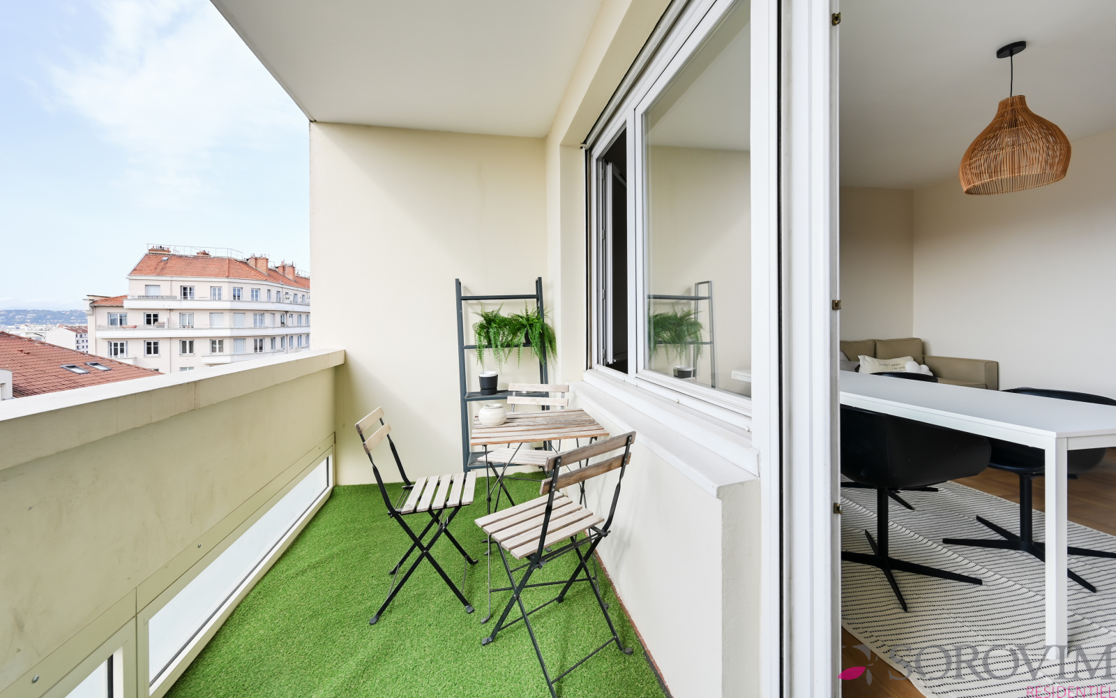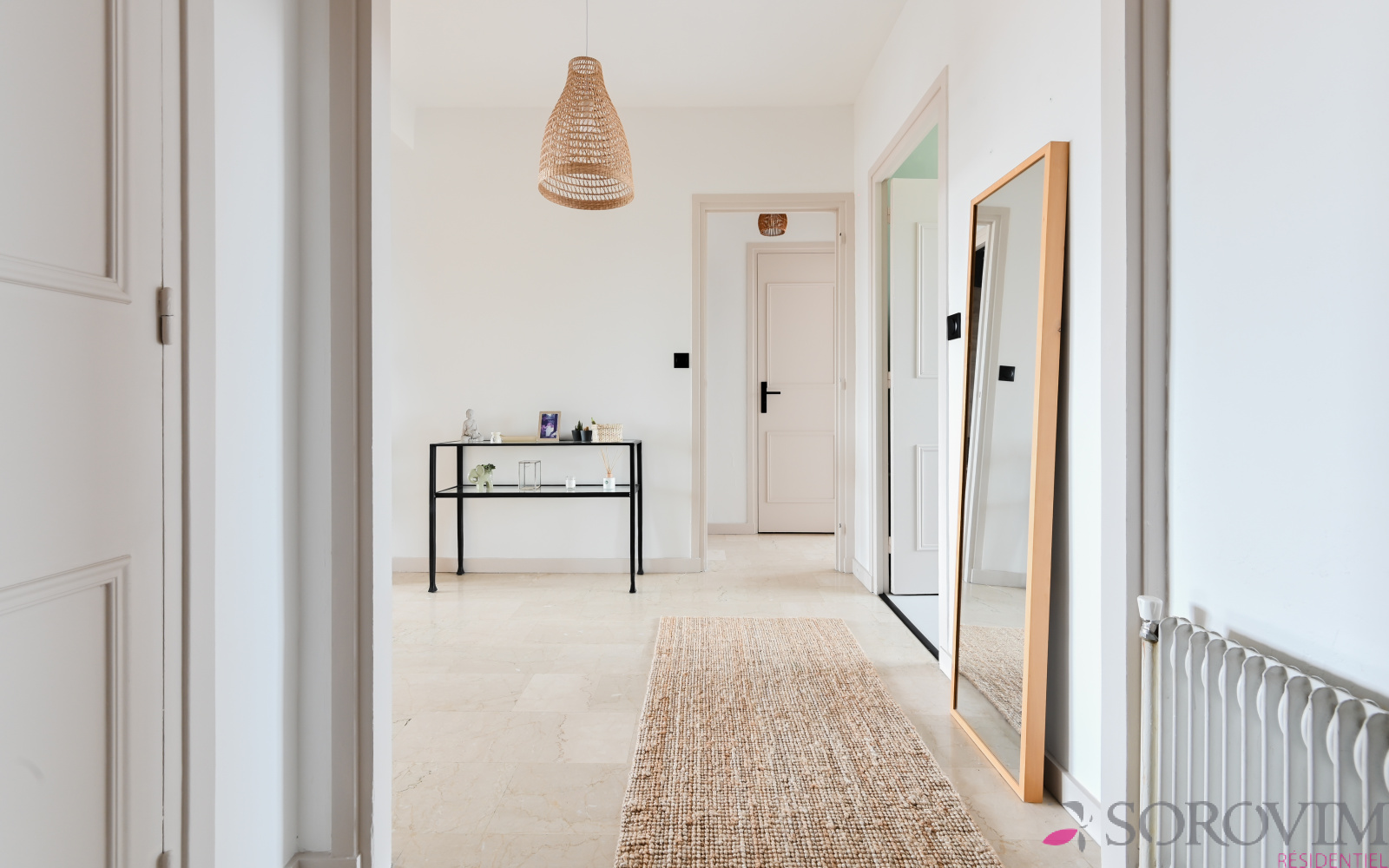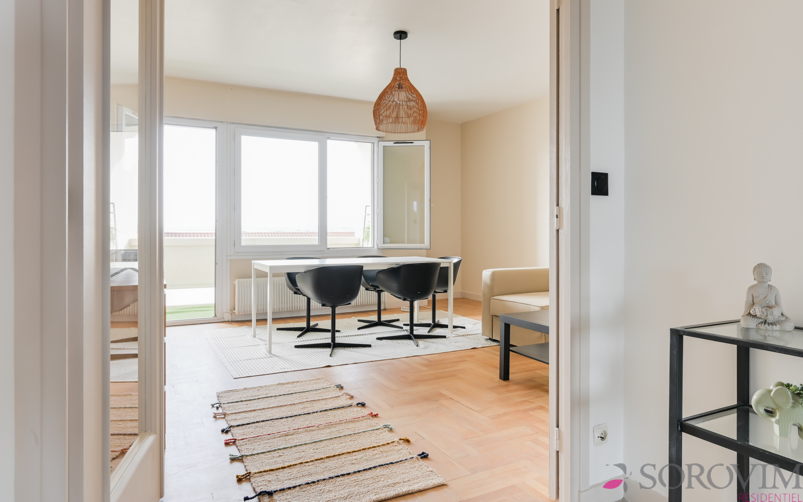 Cours Albert Thomas à Lyon 3ème Monplaisir. Proche de toutes les commodités, dans un immeuble cossu des années 70 très bien entretenu, vous serez séduit par cet appartement entièrement rénové. Dernier étage, il est traversant Sud et Nord. Clair et lumineux, il bénéficie d'un balcon avec une belle vue dégagée sur Lyon. Il est composé d'une entrée avec dressing aménagé, un séjour au Sud ouvert sur le balcon, une cuisine équipée contemporaine indépendante avec table haute donnant sur une loggia, deux chambres dont une avec un grand dressing et une salle de bains moderne. Agencement fonctionnel sans perte de place. Une entrée en pierre marbrière, du parquet dans le séjour et les chambres, double vitrage et stores manuels. Proximité immédiate de la place Ambroise Courtois, métro D arrêt Monplaisir.