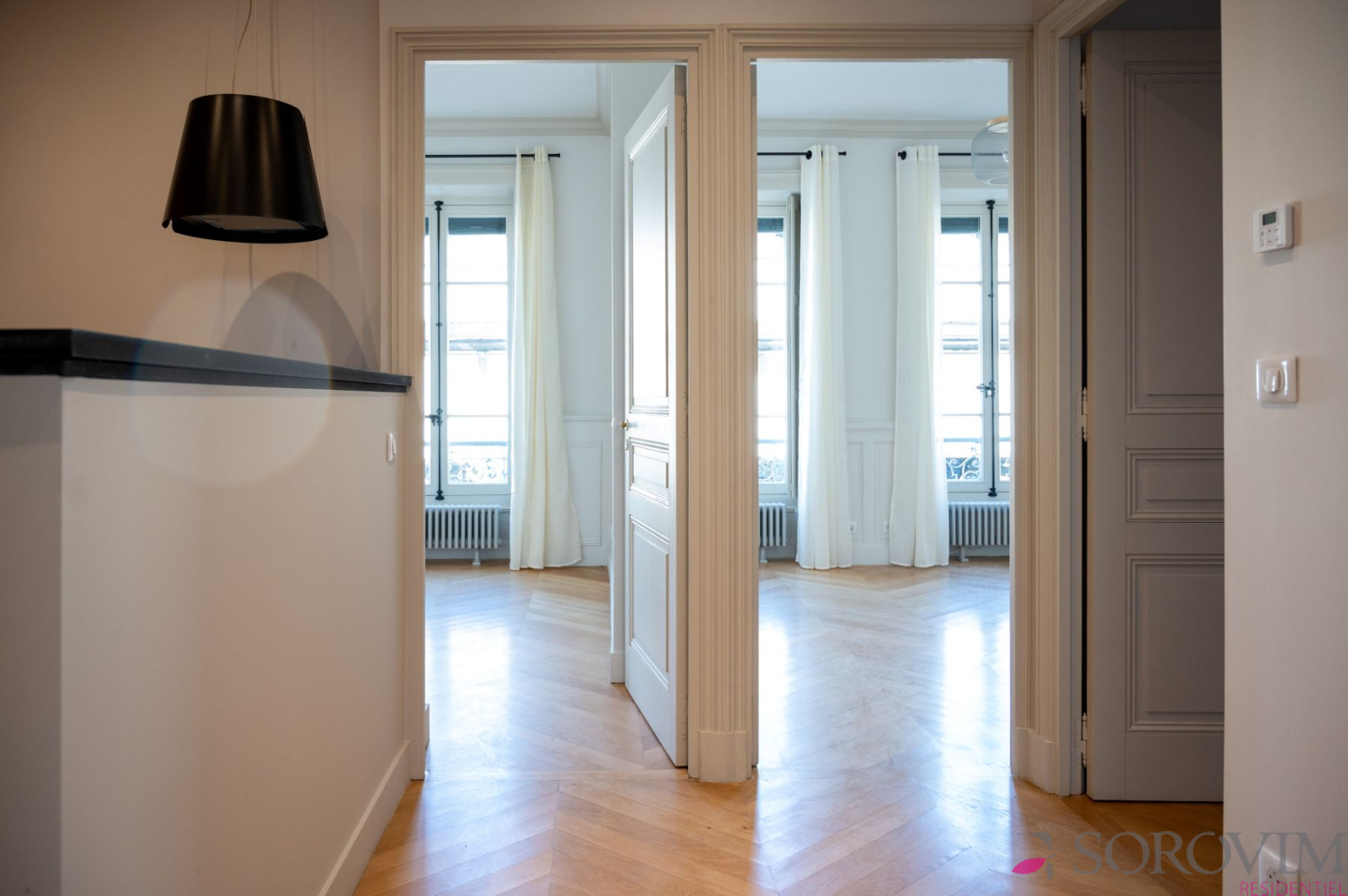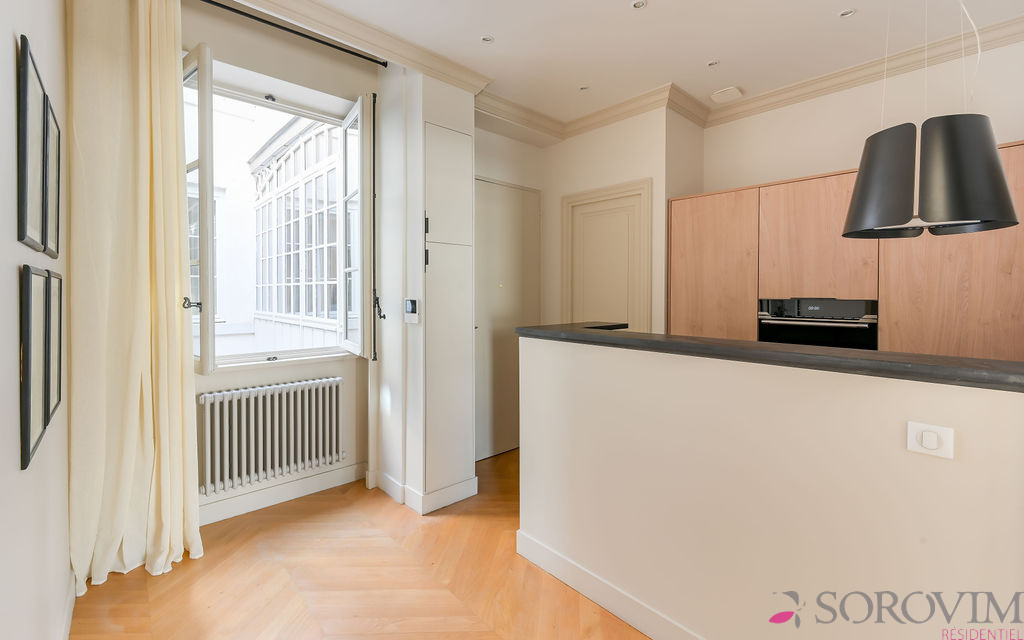 Lyon 2ème - cœur Presqu'île / Cordeliers. Dans un bel immeuble bourgeois, en étage élevé avec ascenseur, coup de cœur pour ce charmant 3 pièces traversant Est et Ouest. Rénové par architecte avec des matériaux de grande qualité, il vous séduira par son charme de l'ancien préservé et ses prestations contemporaines. Il offre un séjour en parquet avec cheminée d'époque, une cuisine entièrement équipée avec son espace repas, deux chambres en parquet avec salle d'eau privative. Idéal pied à terre lyonnais ou investissement patrimonial. Local à vélos. Infos Loi Alur : copropriété composée de 11 lots, quote part charges annuelles 1 044 €, pas de procédure en cours. Pour une visite Angela FALCONNET-VITALI 06.15.75.06.49