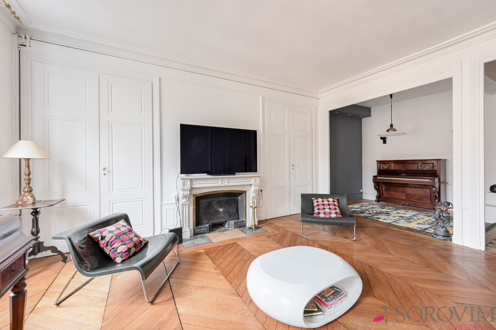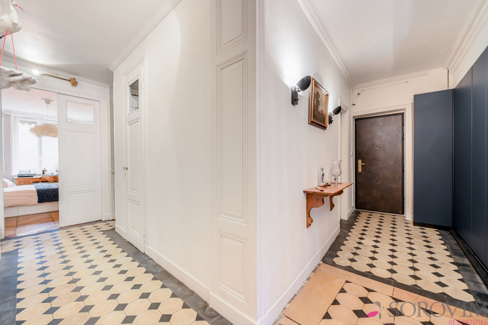 En étage élevé, traversant Est et Ouest, vous serez séduit par cet appartement familial de 143 m² au charme préservé. Une vaste entrée avec carreaux de ciment d'époque et dressing ouvre sur un séjour avec parquet pointe de Hongrie, une cheminée et 3 m de hauteur sous plafond. Une chambre parentale avec son dressing. Sur la cour intérieure et au calme absolu, deux chambres de 14 et 17 m² également en parquet. Une vaste cuisine familiale équipée. Une salle de bains avec douche et baignoire. Une salle d'eau avec toilettes. Chauffage individuel au gaz. Local à vélos. Une cave et un grenier complètent ce bel appartement lumineux et chaleureux.