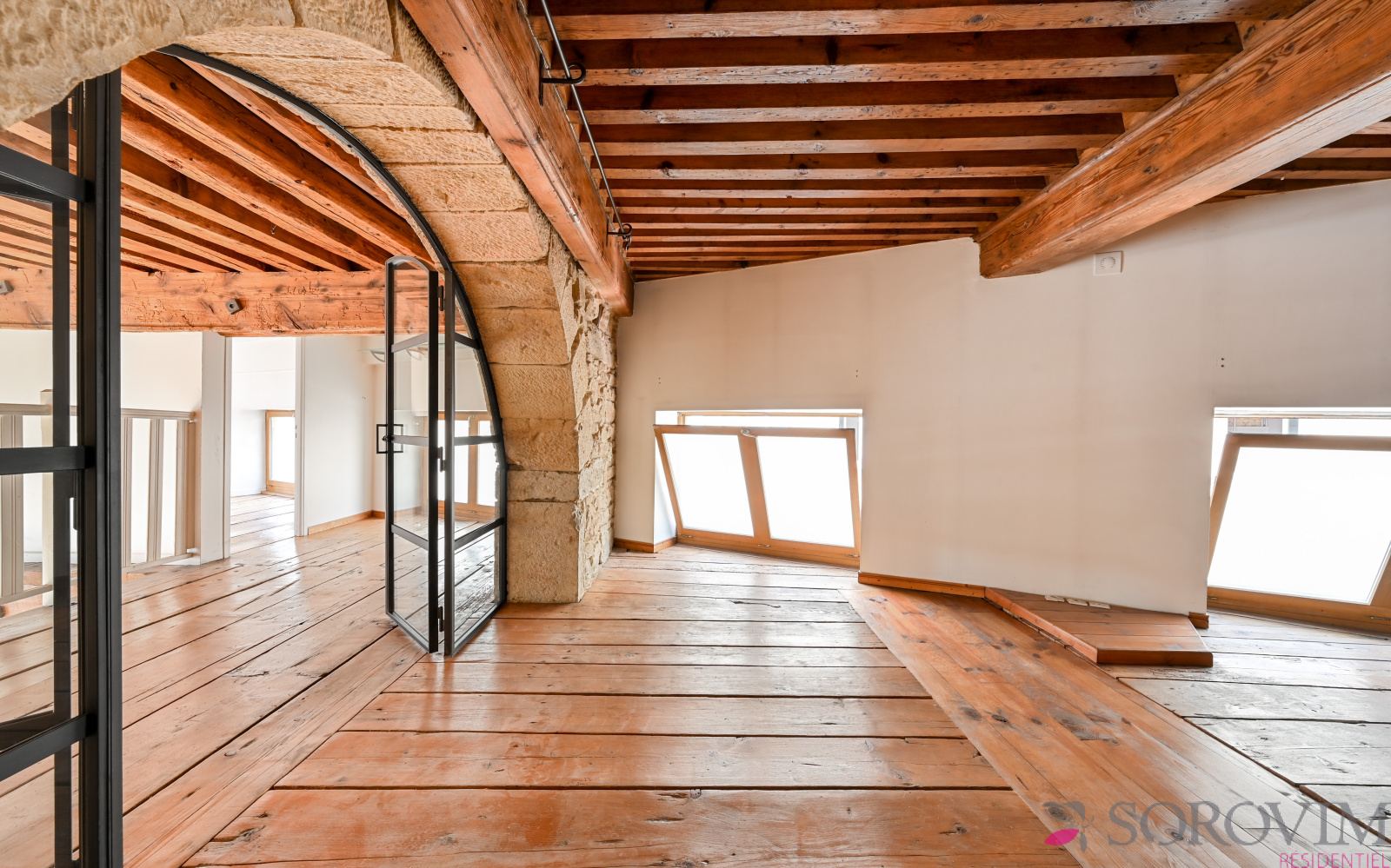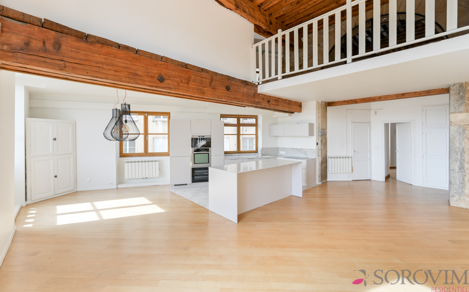 Dans une copropriété de 1850 bien entretenue, vous serez séduit par cet appartement en duplex & atypique, très clair et lumineux avec une vue dégagée sur le Rhône. D'une superficie de 126 m² utile dont 120 m² Carrez , il a conservé son charme de l'ancien, une belle hauteur sous plafond, des poutres apparentes, un parquet d'origine. Belle pièce de vie, séjour-salle à manger avec une cuisine ouverte contemporaine rénovée. Une chambre au rez-de-chaussée avec sa salle d'eau. A l'étage, une ambiance intimiste avec poutres et large planche de bois, deux chambres dont une avec salle de bains attenante. De nombreux rangements intégrés.