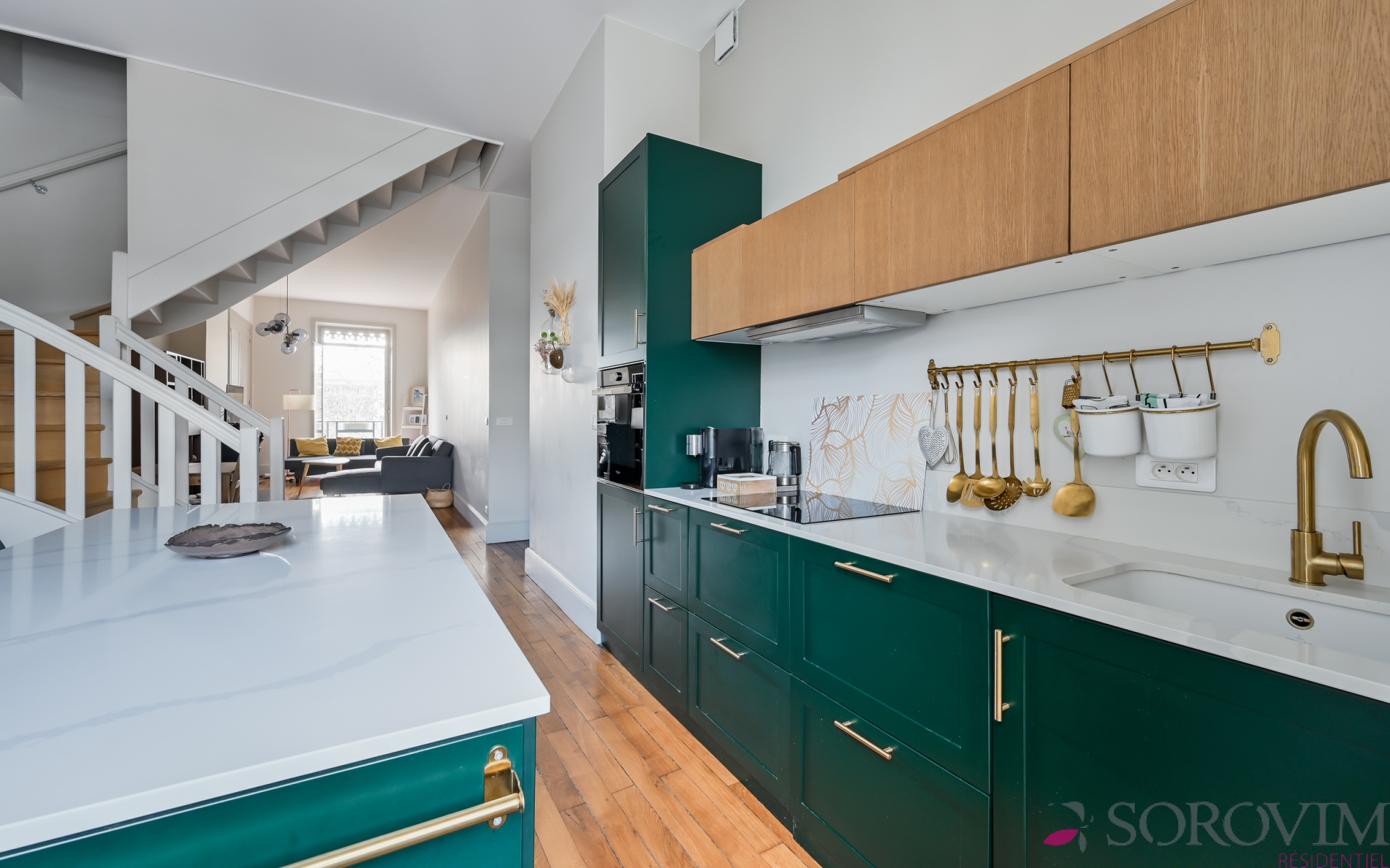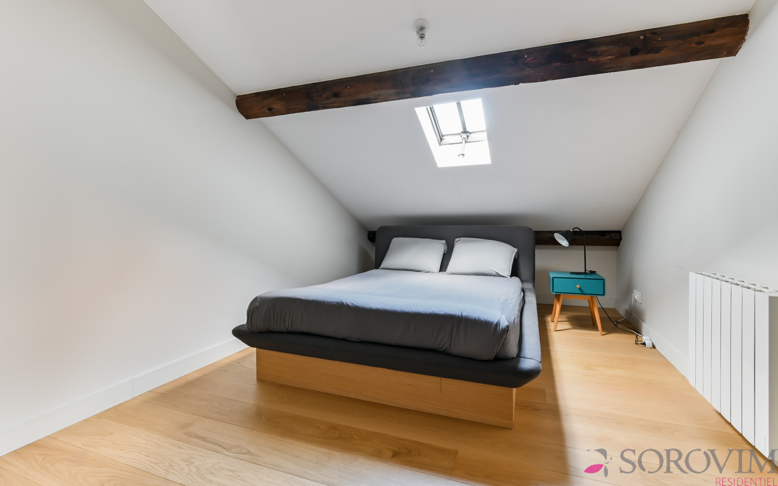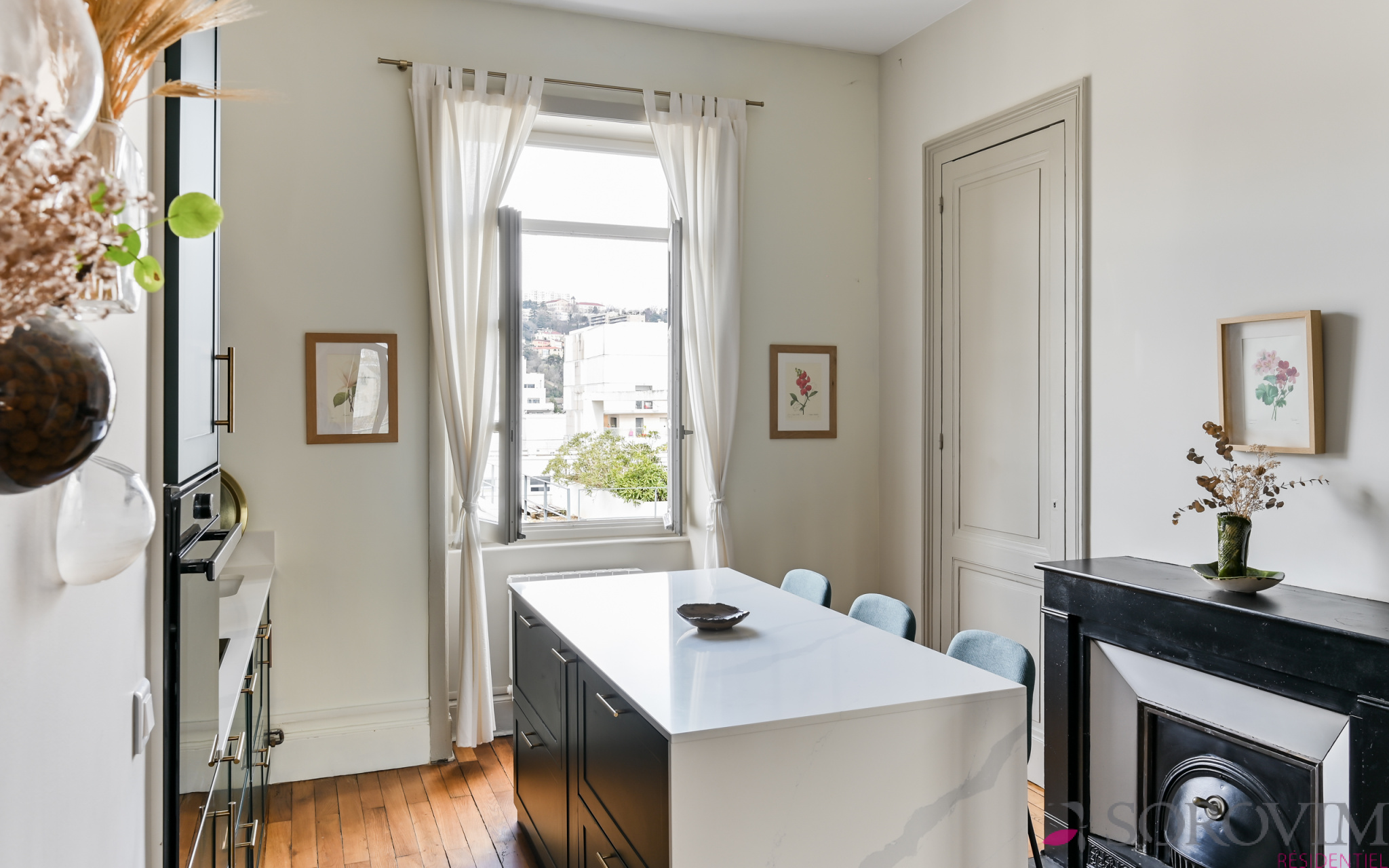 En exclusivité, à Lyon 2ème, face à l'église Sainte-Blandine. Dans un immeuble ancien, au dernier étage avec une vue dégagée, duplex de 103 m² utile dont 77 m² Carrez, traversant Est / Ouest. Au premier niveau, une pièce de vie de 41 m² avec parquet et cheminée composée d'un salon et d'une cuisine équipée contemporaine. Une chambre parentale avec sa salle d'eau. A l'étage, une chambre, un bureau et une salle de bains avec lumière naturelle. Chauffage individuel. Cave.