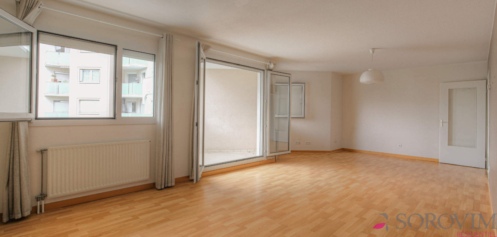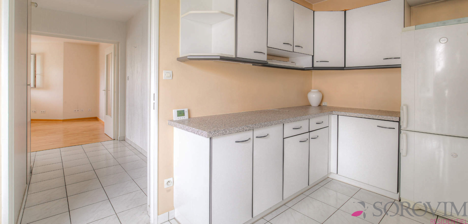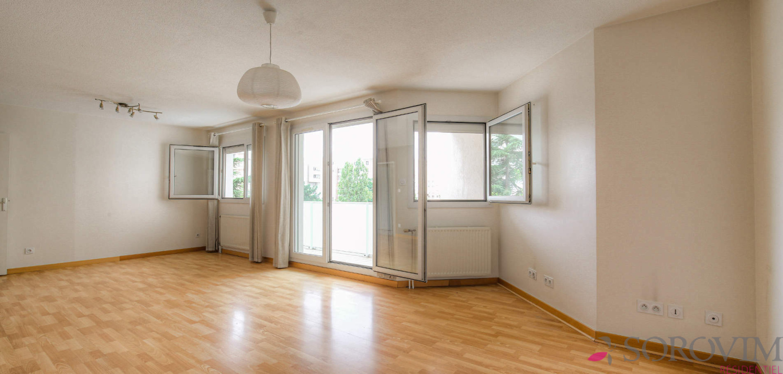 L'appartement de 97 m² est bien distribué et possède de beaux volumes. Il est traversant, clair et lumineux avec une triple exposition. Le hall d'entrée dessert une spacieuse cuisine aménagée, une pièce de vie séjour-salle à manger ouverte sur un balcon à la vue dégagée et verdoyante. Trois chambres, dont une avec douche et lavabo attenant. Une seconde salle d'eau séparée et un toilette indépendant. Double vitrage et stores électriques. Nombreux rangements. Des travaux de rafraichissement sont à prévoir.