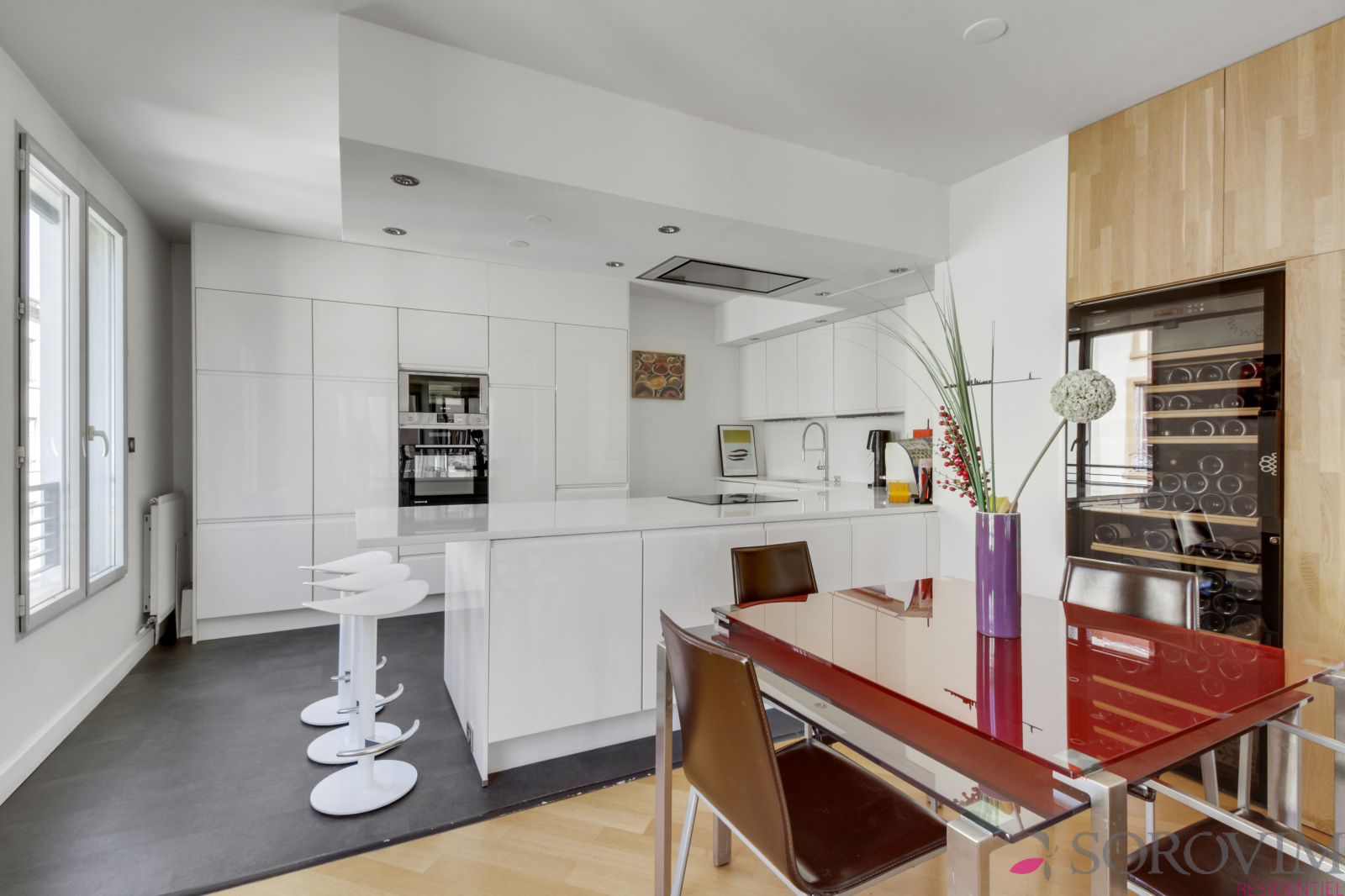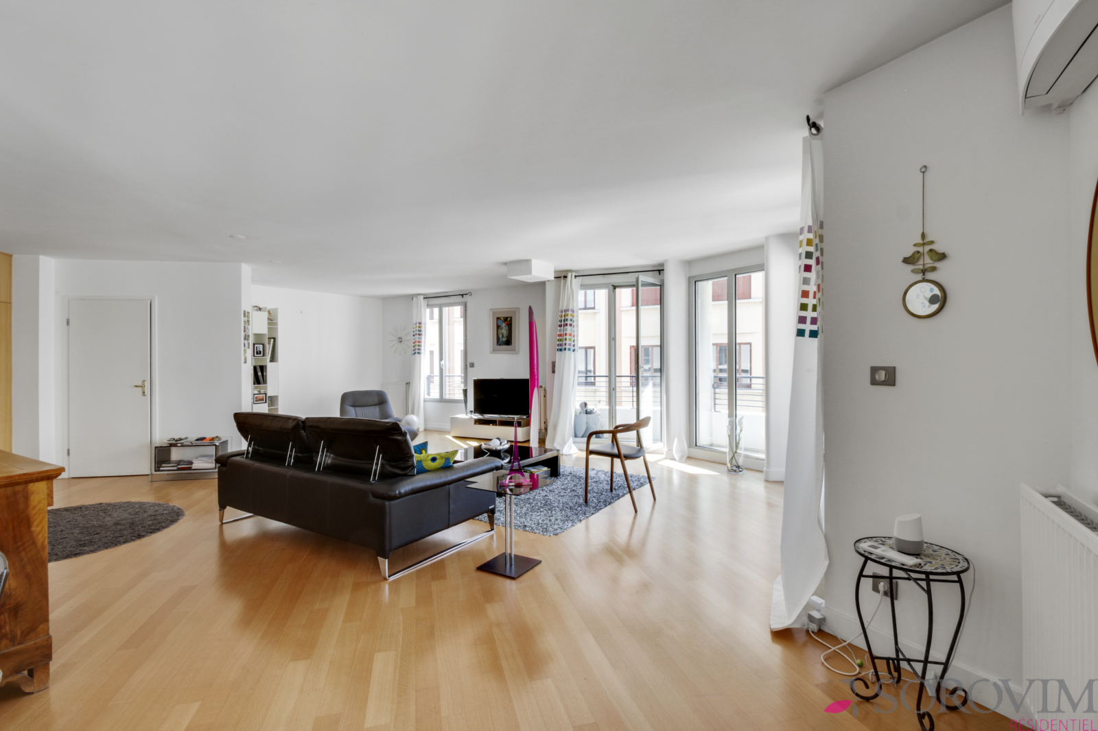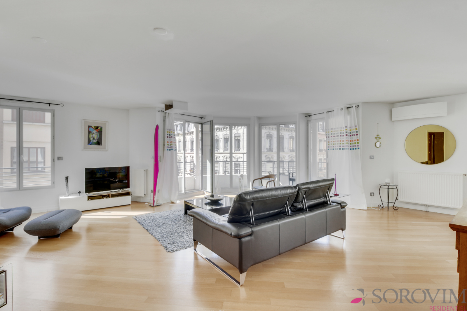 Bel appartement familial de 163 m² en étage élevé d'une résidence récente de standing. Il se compose d'une triple réception de 80 m² en parquet avec de nombreuses baies vitrées donnant sur un balcon filant, une cuisine USA contemporaine entièrement équipée avec un espace repas. Les parties nuits offrent quatre grandes chambres en parquet avec une salle de bains et une salle d'eau. De nombreux dressings aménagés réalisés sur-mesure ainsi qu'une buanderie. Chauffage individuel au gaz et climatisation.