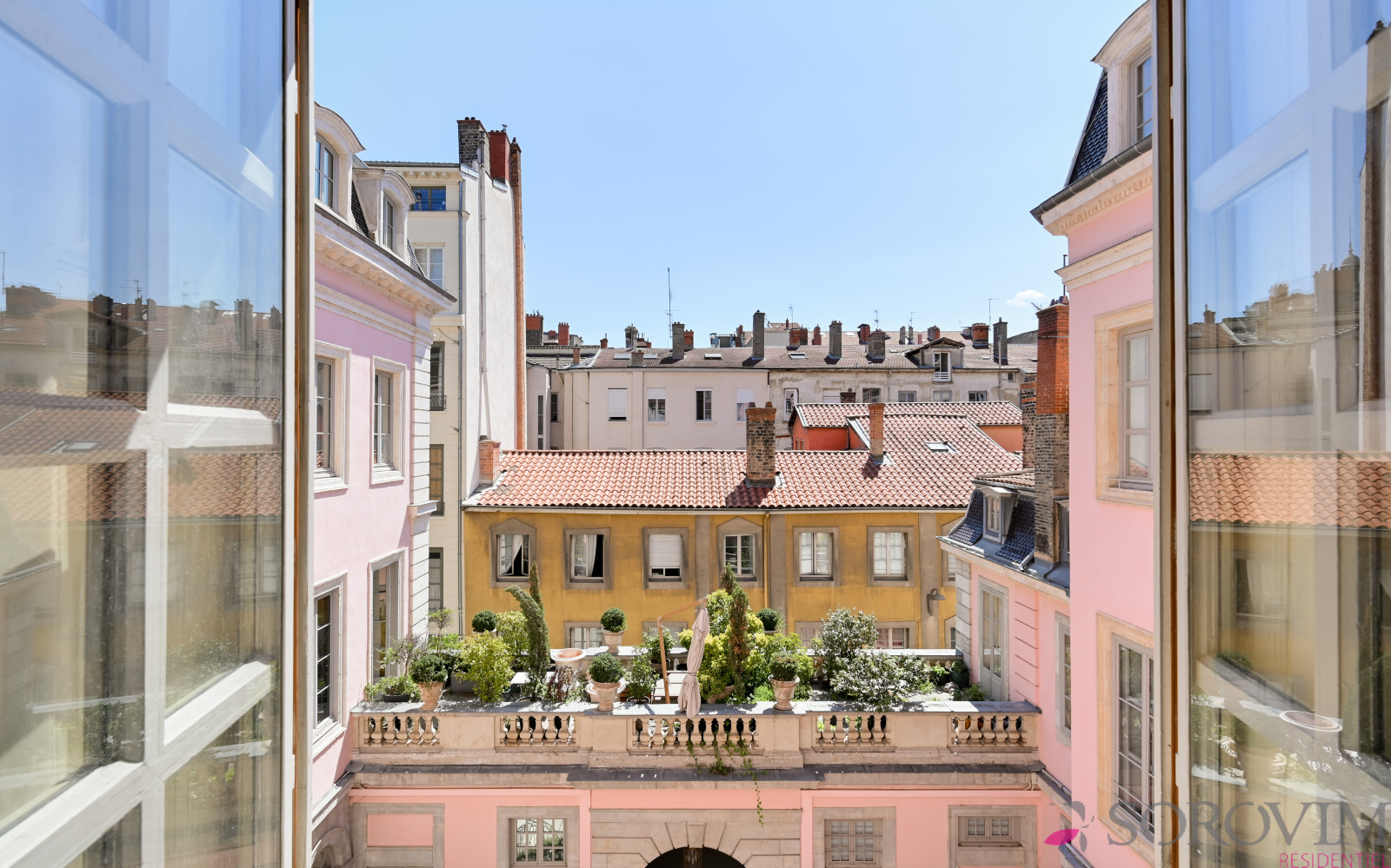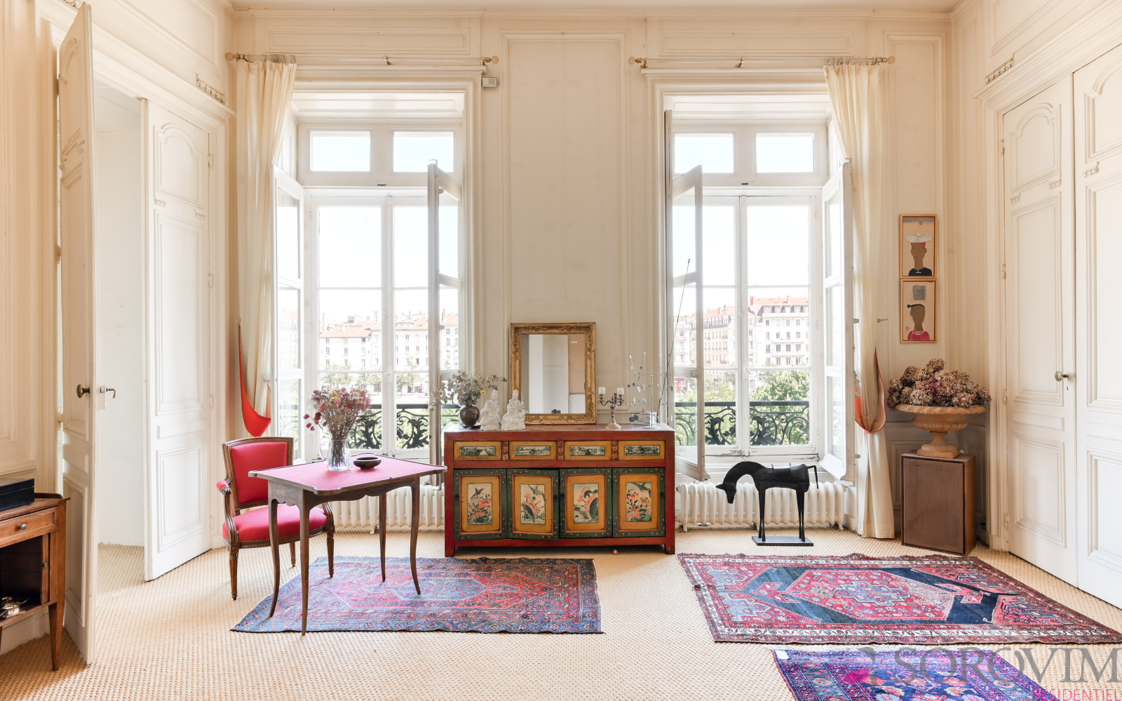 Lyon 2, place Bellecour. Dans ce somptueux Hôtel Particulier "Hôtel de Varey" du 18ème siècle classé monument historique, vous serez séduit par le prestige et la qualité du bien, sa façade, son escalier et sa rampe en fer forgé. Un appartement en duplex qui possède une superficie de 210 m². Un spacieux séjour bénéficiant d'une belle hauteur sous plafond et deux grandes fenêtres, une cuisine - salle à manger avec vue sur la place Bellecour. Au même niveau, deux chambres avec une grande salle de bains. A l'étage, trois chambres pleines de charme avec poutres apparentes, un atelier, une pièce buanderie, une salle de bains et nombreux rangements. Deux portes palières.
