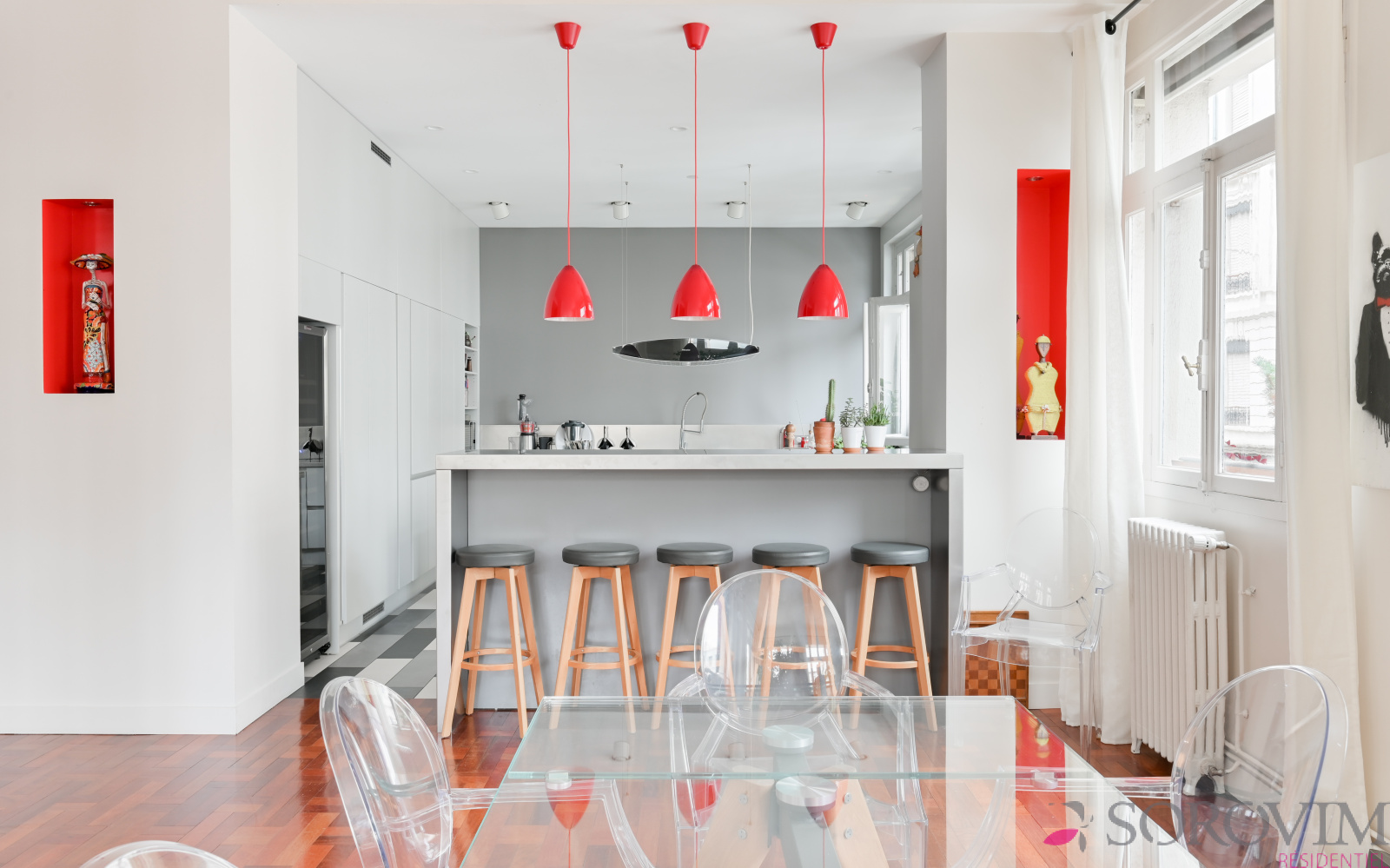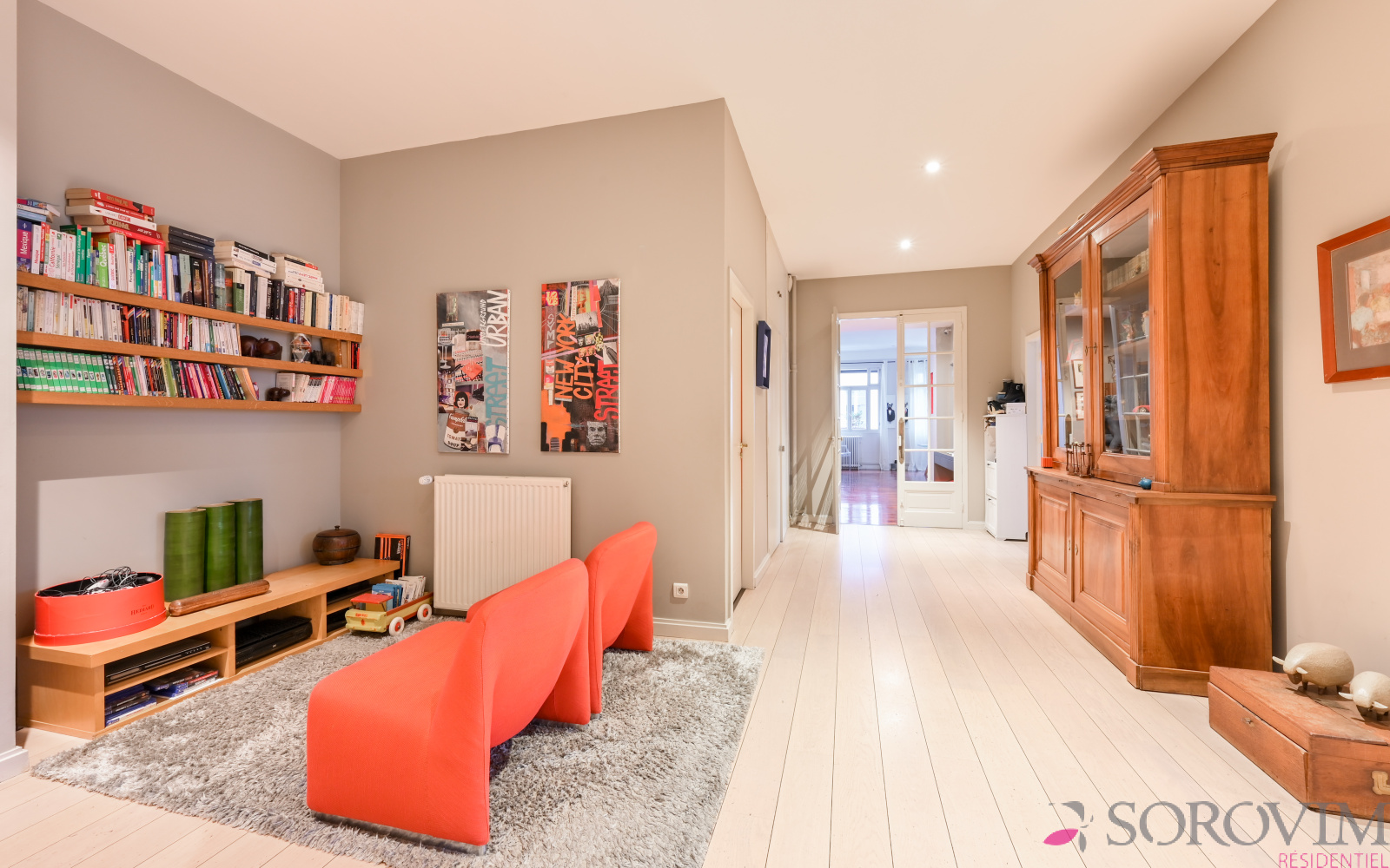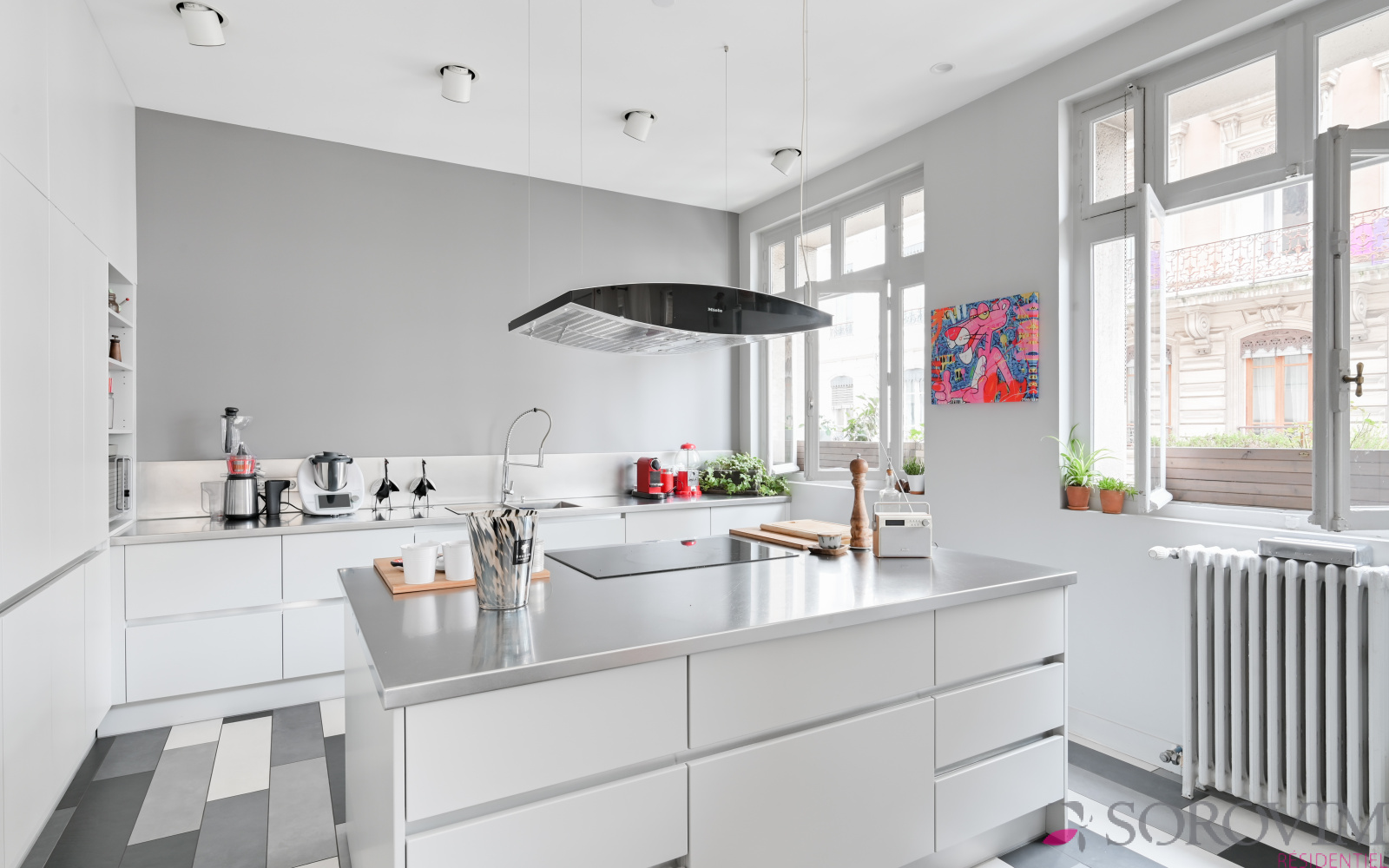 Lyon 6ème Saint Pothin - Dans un bel immeuble Art Déco, vous serez séduit par cet appartement bénéficiant d'une magnifique vue dégagée sur l'église Sainte-Croix. Cet appartement familial de 241 m² offre un espace de réception en angle comprenant une grande entrée, un salon, une salle à manger et une cuisine ouverte équipée. La partie nuit bien distincte ouvre sur un espace salon télé pouvant faire office de bureau. Six chambres dont la suite parentale avec dressing et salle de bains. Une salle d'eau, une buanderie et un atelier complètent cet appartement d'exception.