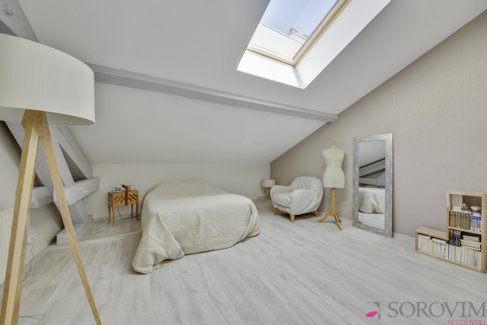 Vous serez séduit par cet appartement duplex d'une superficie de 72 m² habitables dont 60 m² Carrez. Il a été entièrement rénové avec une belle hauteur sous plafond. Il est très clair et lumineux, exposé plein sud et bénéficie d'une vue dégagée. Il se compose d'une pièce de vie avec une cuisine équipée ouverte sur le séjour. Un escalier mène au coin nuit, deux belles chambres mansardées, une salle d'eau. Un espace buanderie.