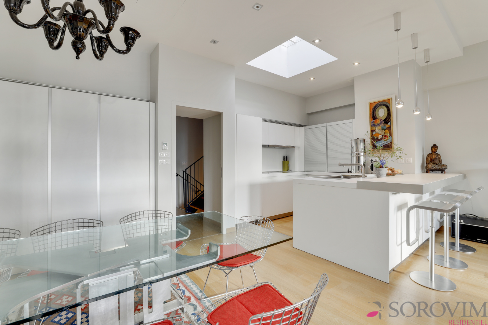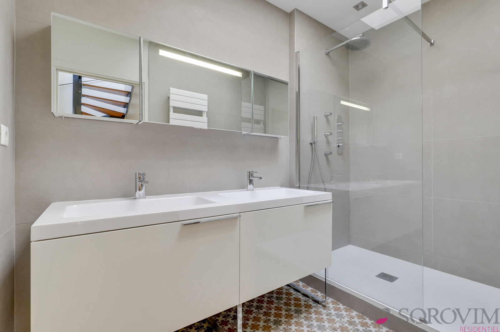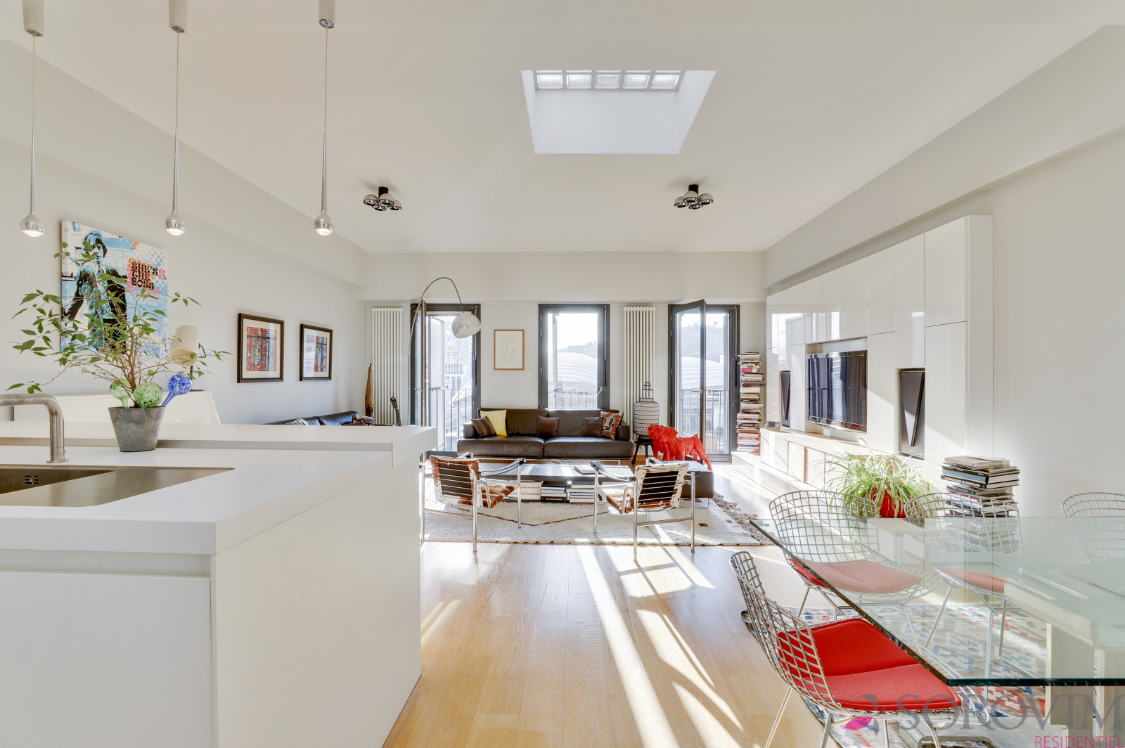 En dernier étage d'une résidence contemporaine de standing, bel appartement familial en duplex de 140 m² bénéficiant d'un toit terrasse avec une vue dégagée. La pièce de vie de 50 m², exposée plein Sud, offre un beau volume avec 3 m de hauteur sous plafond et une cuisine équipée haut de gamme. L'espace parents est composé d'une chambre en parquet avec des dressings réalisés sur-mesure, une douche à l'italienne, une buanderie ainsi qu'un bureau. L'escalier permet d'accéder à la terrasse privative de 70 m² avec une vue panoramique sur Fourvière & la Saône. La partie inférieure du duplex est dédiée aux deux chambres enfants, une salle de bains avec douche et baignoire, un dressing.