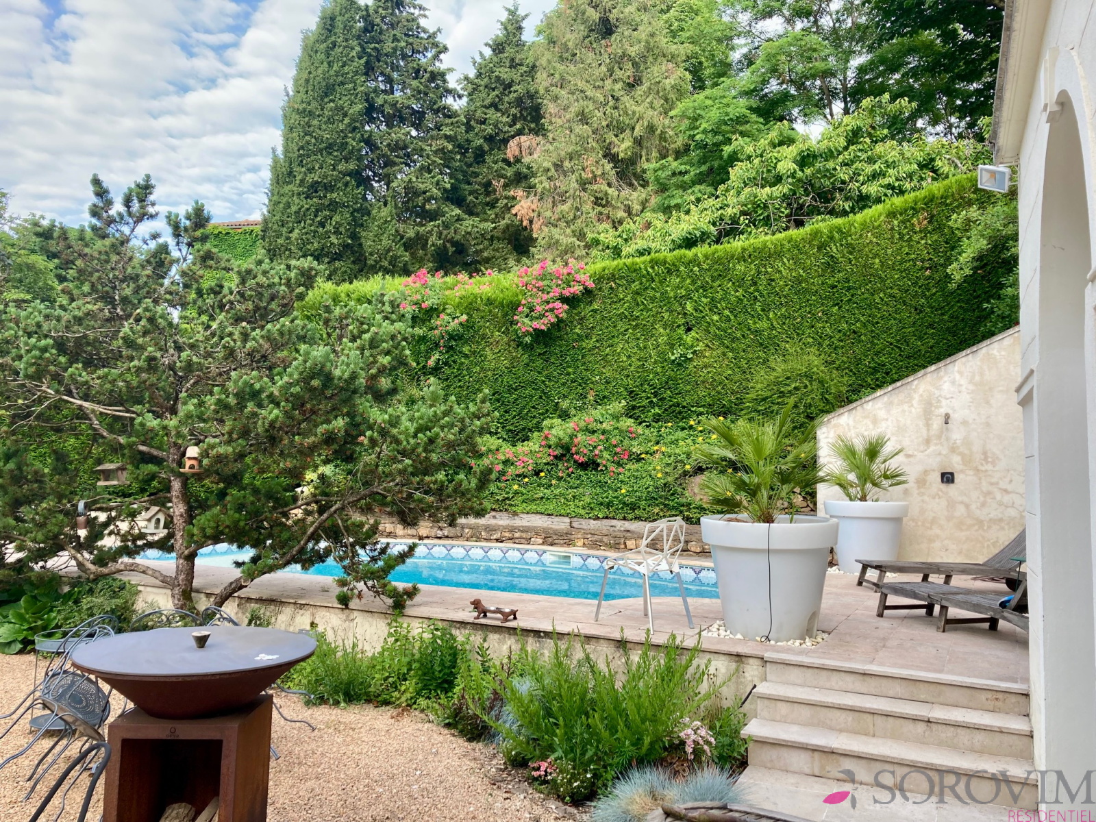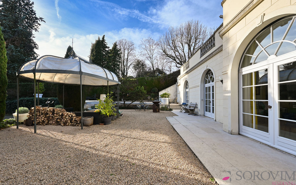 À deux pas du centre du village de Saint-Cyr-au-Mont-d'Or, découvrez cette maison de charme et de plain-pied. Datant de 1920, issue de la réhabilitation d’une ancienne orangerie, la propriété bénéficie d’un environnement calme et verdoyant. La maison principale s’organise autour d’une superbe pièce de vie de 60 m², baignée de lumière, sublimée par une magnifique cheminée en pierre. La cuisine ouverte, conviviale et fonctionnelle, s’intègre parfaitement à l’espace de vie. Côté nuit, vous trouverez une suite parentale avec sa salle d'eau, deux grandes chambres distinctes séparées avec leur salle de bains. Implantée sur un terrain arboré de 1 785 m², la propriété dispose d’une piscine chauffée au sel, idéale pour profiter pleinement des beaux jours. Au fond du jardin, une dépendance de 25 m² propose une chambre invitée, une salle d'eau avec toilettes, pour recevoir famille ou amis. Deux grands garages complètent ce bien rare, alliant caractère de l’ancien, prestations de qualité et cadre de vie recherché au cœur des Monts d’Or.